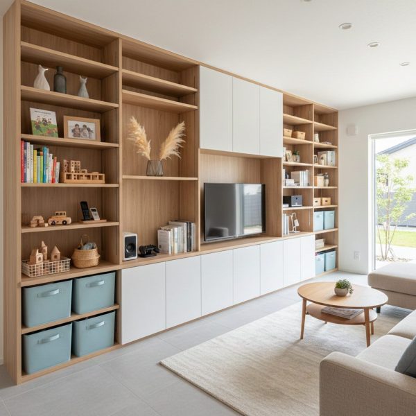 散らからないリビングをつくる!埼玉の注文住宅で叶える“壁面×可動棚”の最強収納術