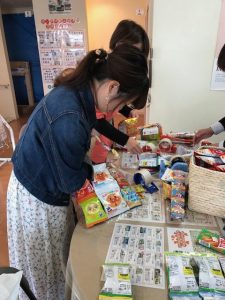 お菓子バック作りを体験していただきました。(*´▽`*)