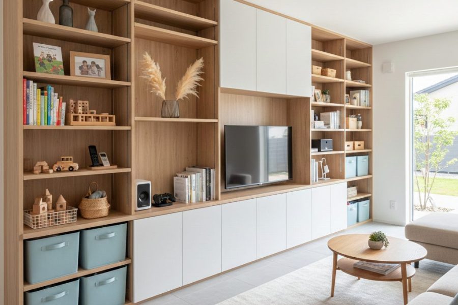 散らからないリビングをつくる!埼玉の注文住宅で叶える“壁面×可動棚”の最強収納術