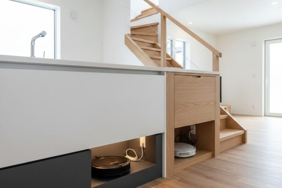 ロボット掃除機の置き場どうする?造作収納で生活感ゼロのスッキリ空間に|埼玉の注文住宅で後悔しない収納計画