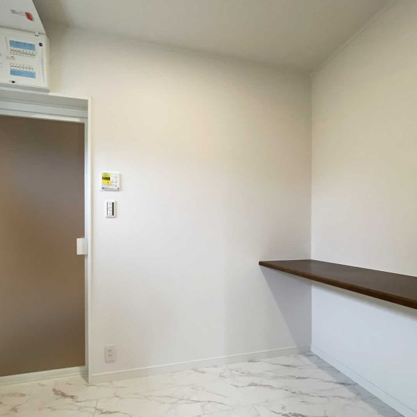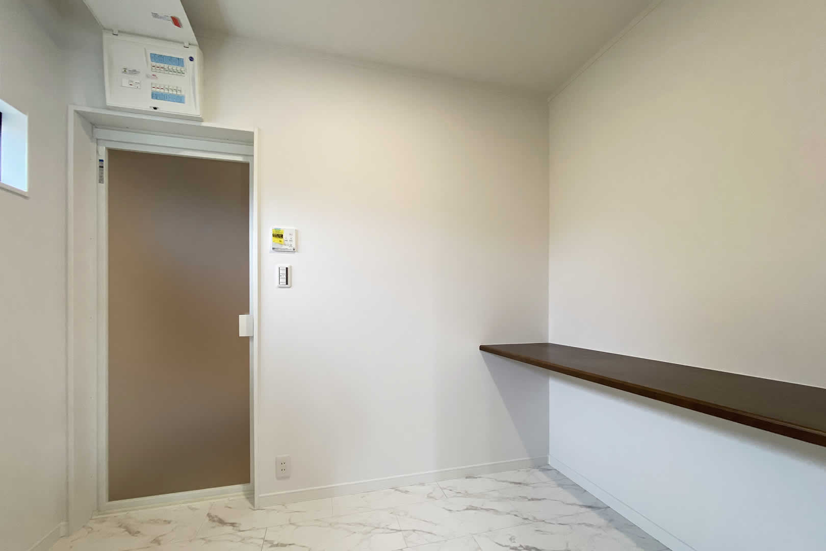 コンパクトな中にも使いやすさが考えられたランドリー兼、脱衣室。共働き夫婦にもとっても便利な室内干しスペースは人気の間取りです。