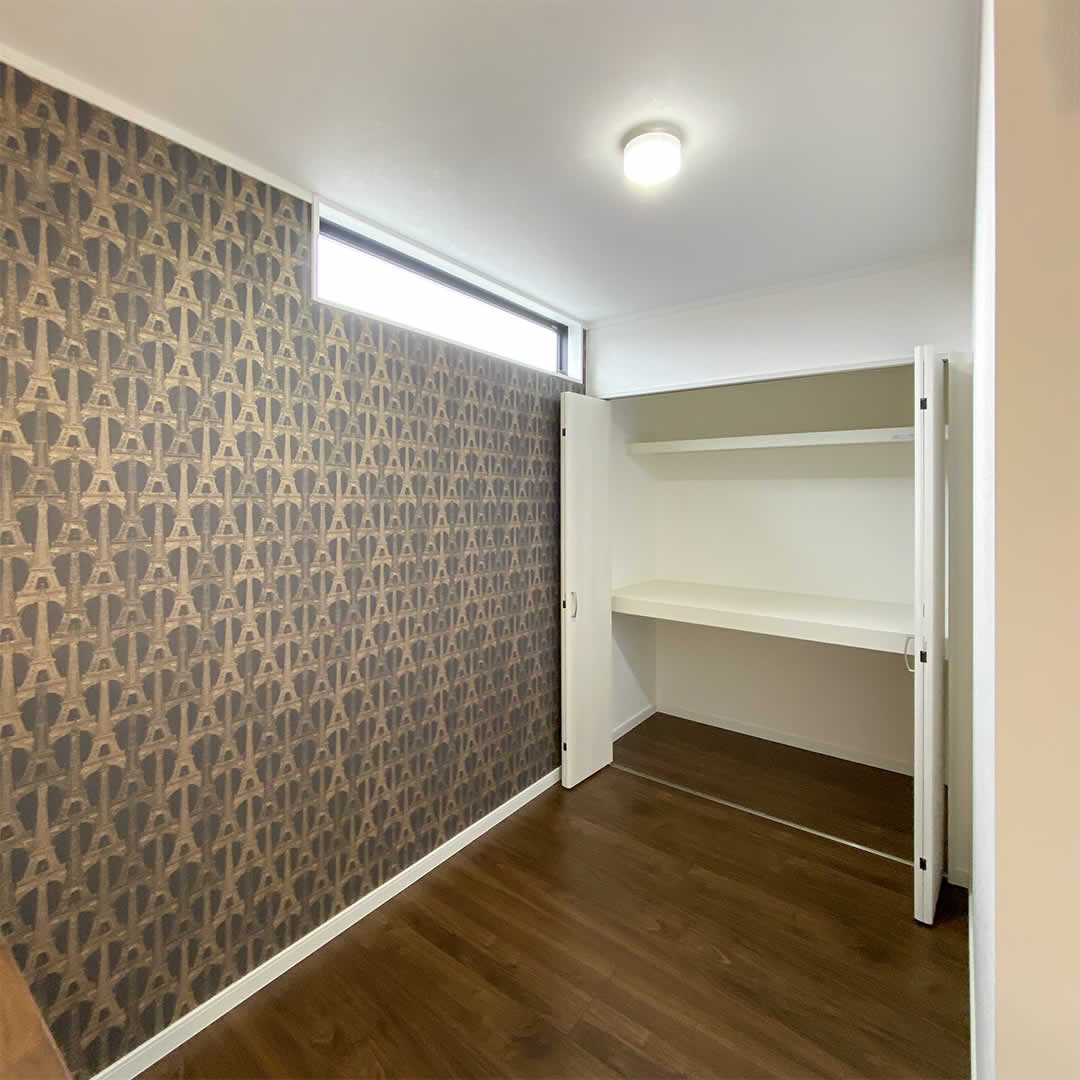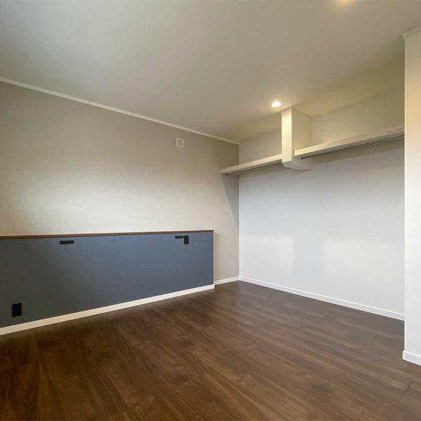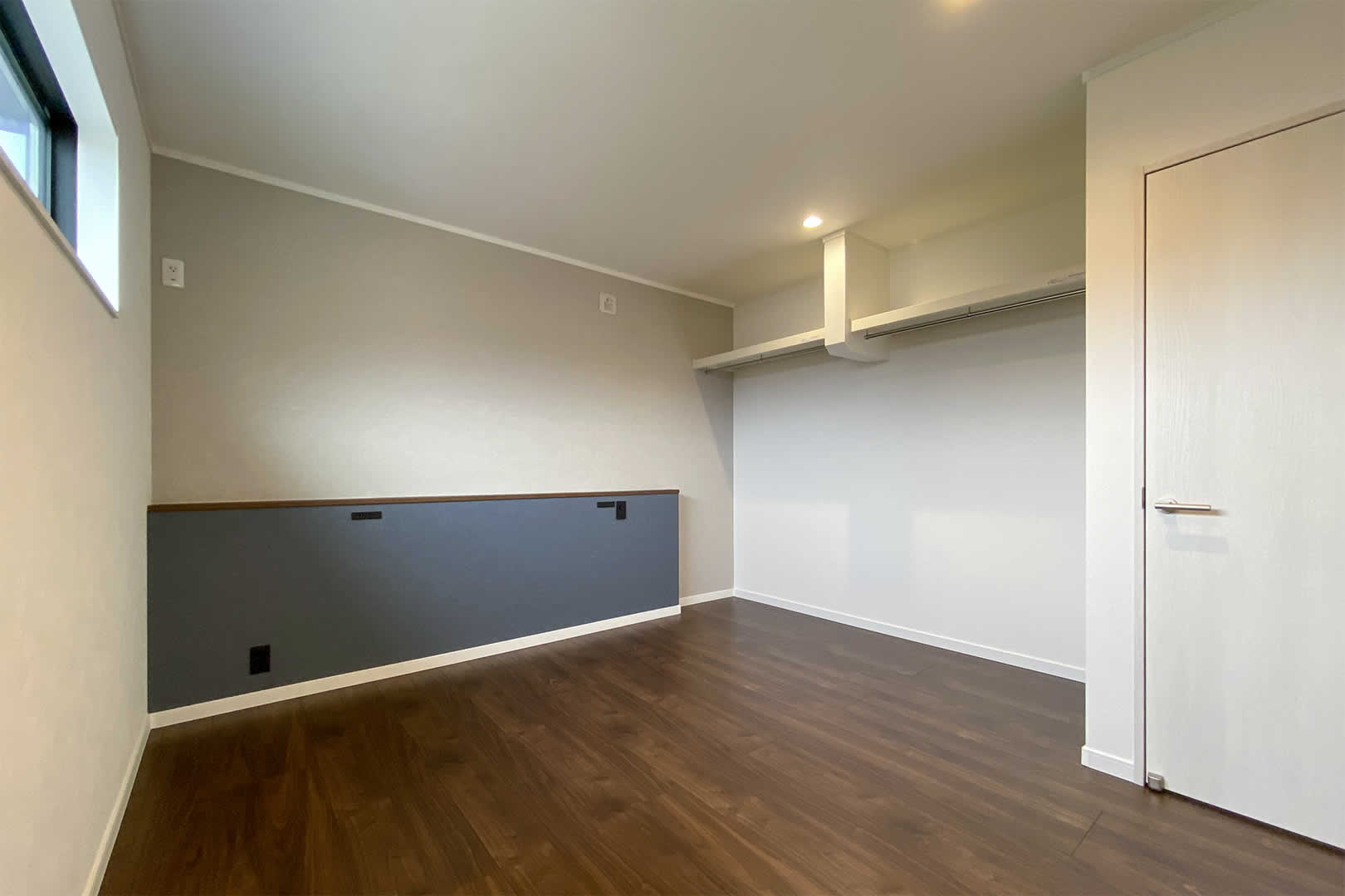 カウンター付のベッドルームは圧迫感が無いようにオープンクローゼットになっています。