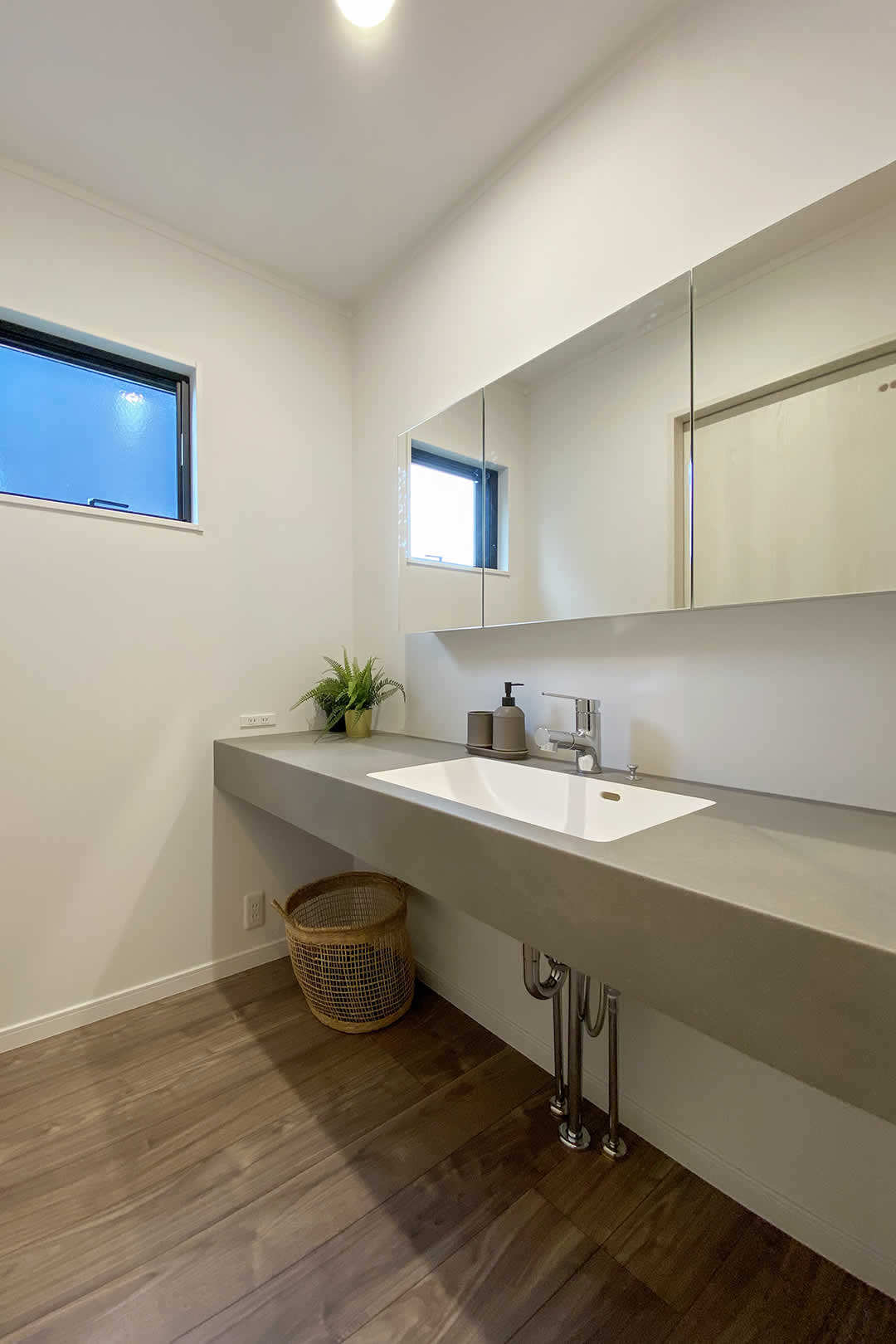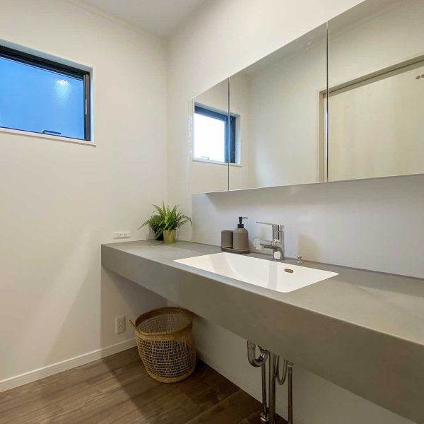 とても人気なAIKAのスッキリとした独立洗面。デザイン性と使いやすさも兼ね備えた洗面化粧台です。