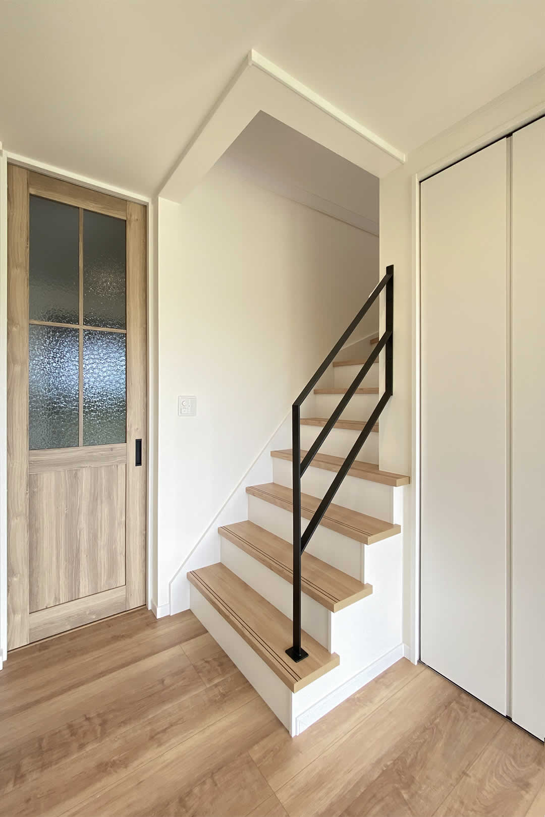 階段手すりをアイアンにしてスタイリッシュな空間になっています。