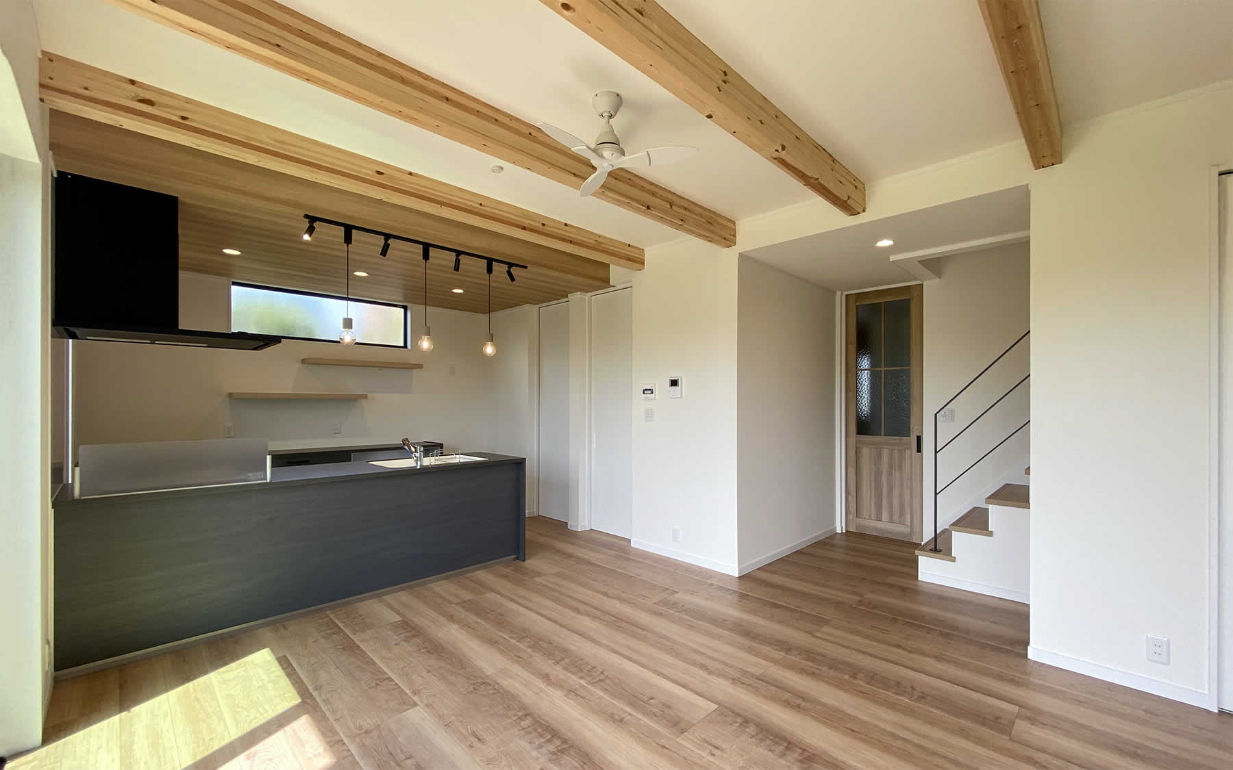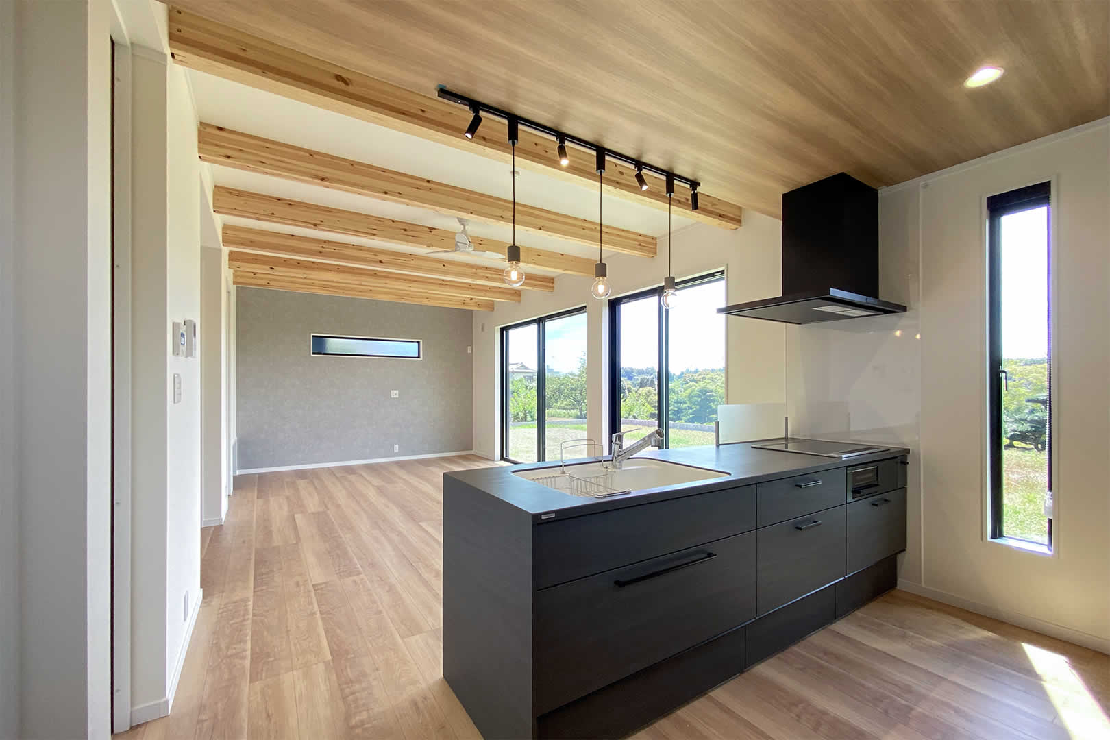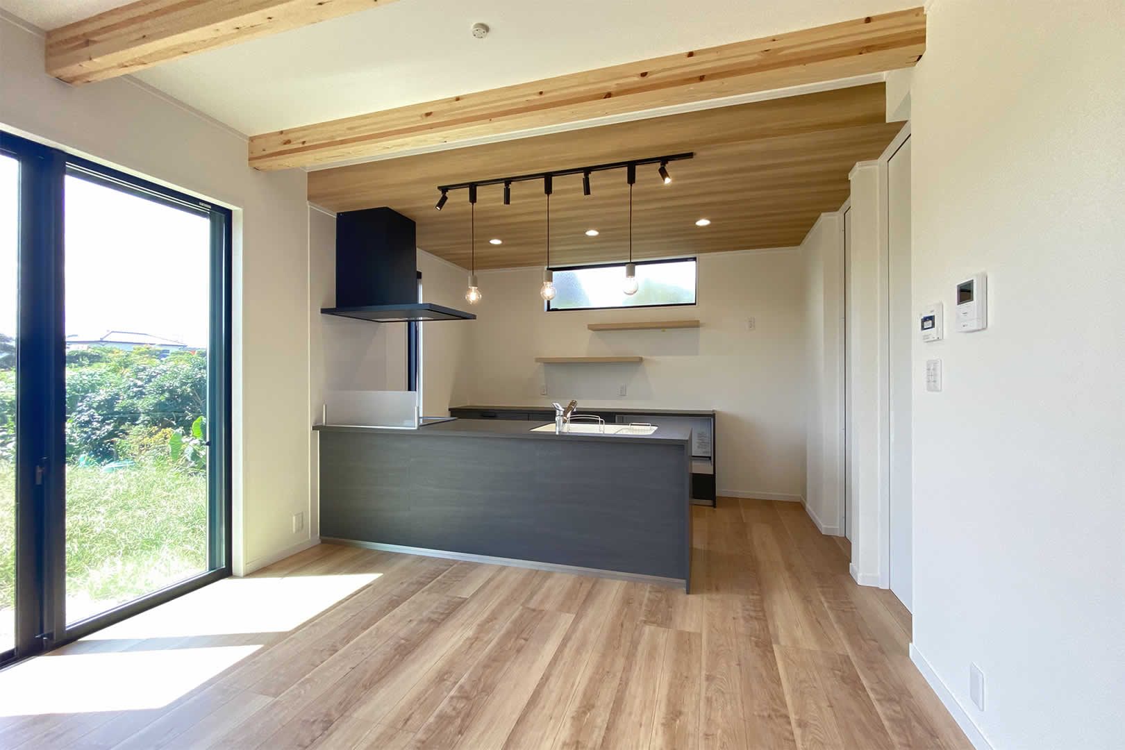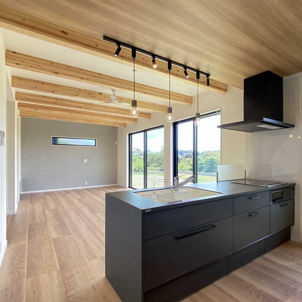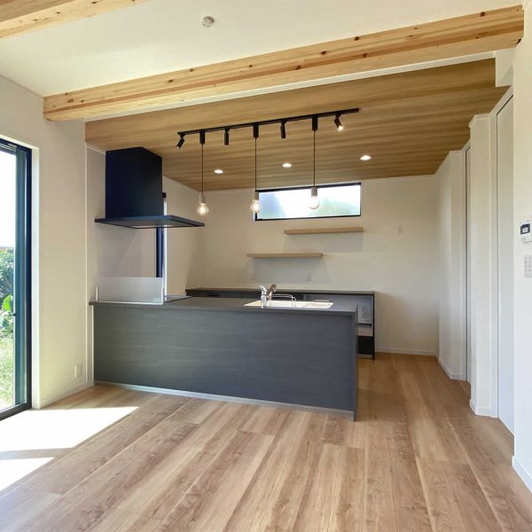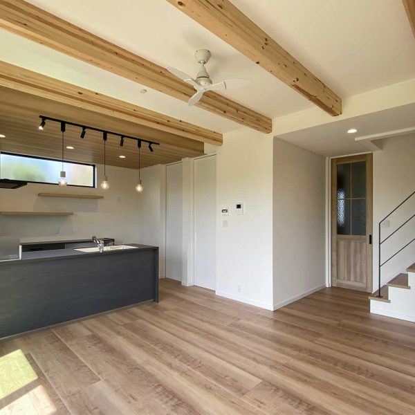 天井に梁を見せて天井を高くすることで開放感が出ます。