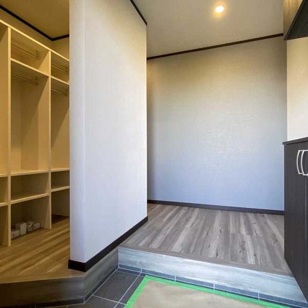帰ってからすぐに上着やバッグを片づけられるファミリーロッカーを作りました。物が散らからず、すっきりした玄関を保ちます。