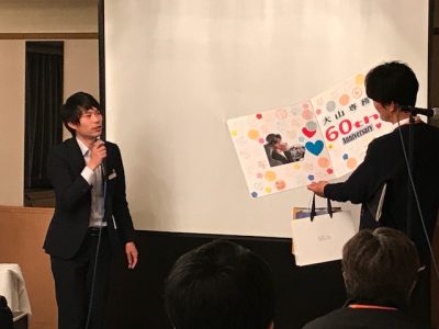 サンディホームの大山専務の還暦のお祝いを社内でサプライズ!