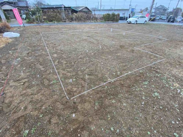 余談ですが、地縄を張ってくれた日は2月初旬のあの雪の日でした