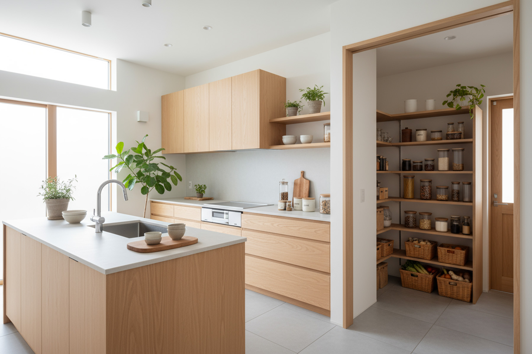 パントリーの役割は“物を隠す”より“生活を整える”。