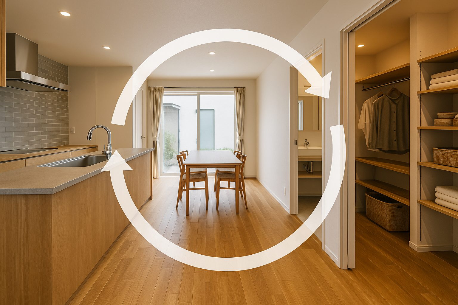 特別な広さがなくても、回遊動線は設計次第で取り入れられます。家づくりの早い段階で、どう動くか、どこに何を収納するかをイメージしておくことがポイントです。