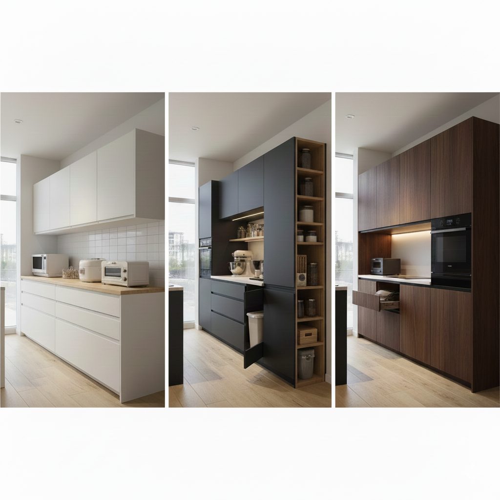 向いている人: デザイン性・統一感を求める / 家電収納を細かく設計したい