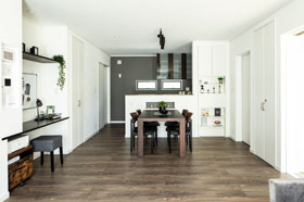 スムーズで家事効率がとてもよい家事動線。キッチン、洗面、浴室などの水まわりが行き来しやすいと家事効率がアップします。3