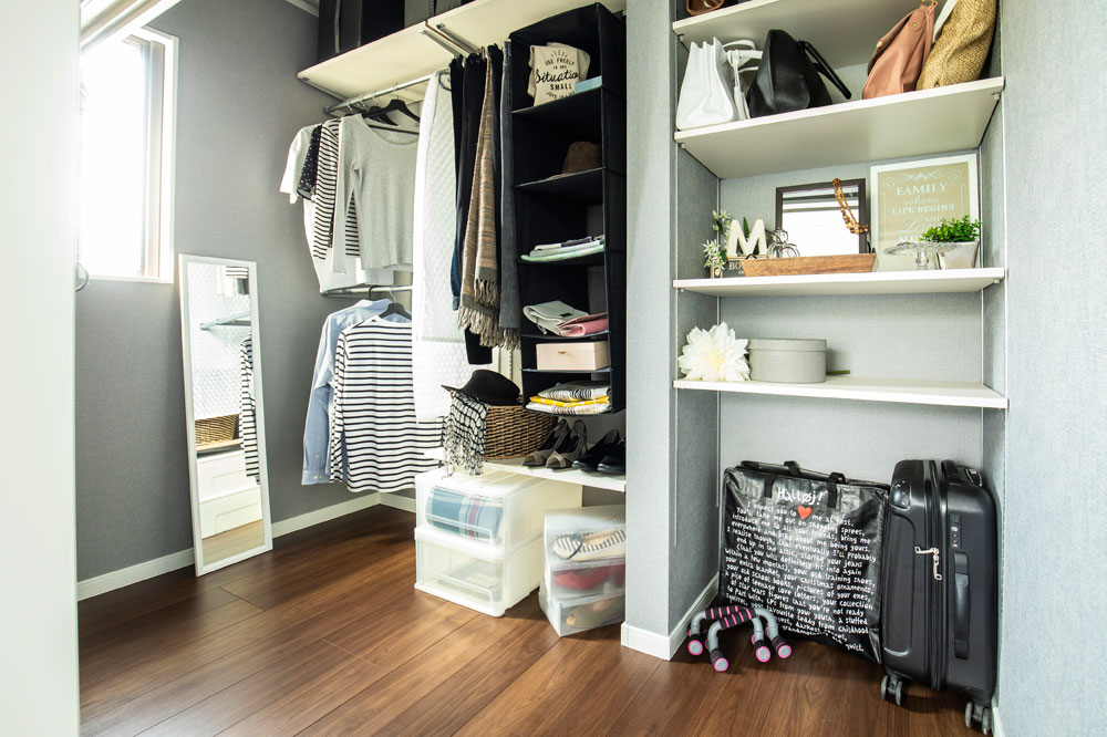 広々としたクローゼット。家族みんなの衣類や季節ごとの衣装ケースなどもスッキリ収納できます。9