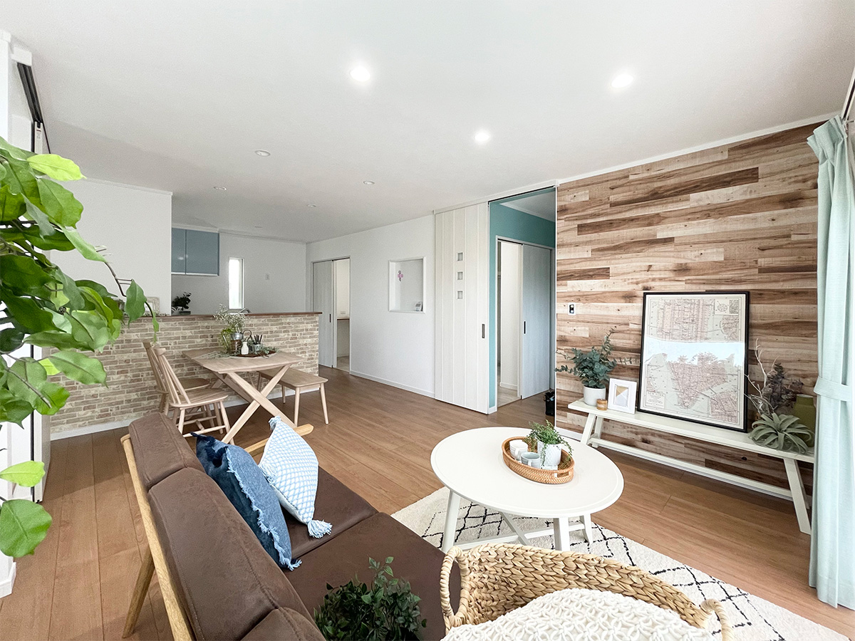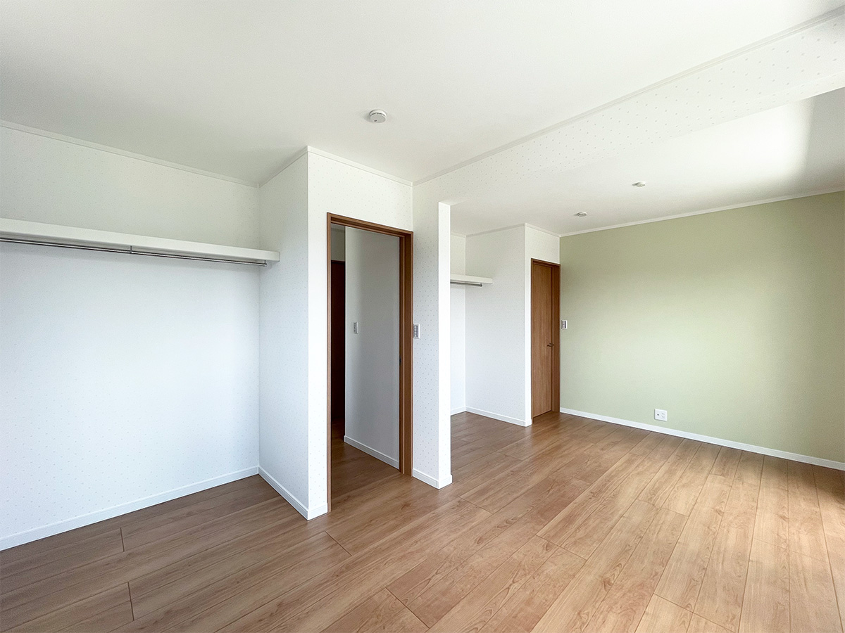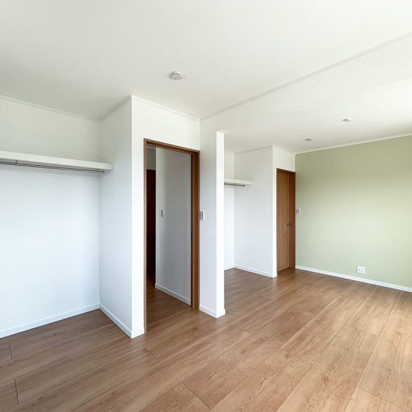 将来的には仕切れるような配置。お子様が小さい間は広い空間として使えます。