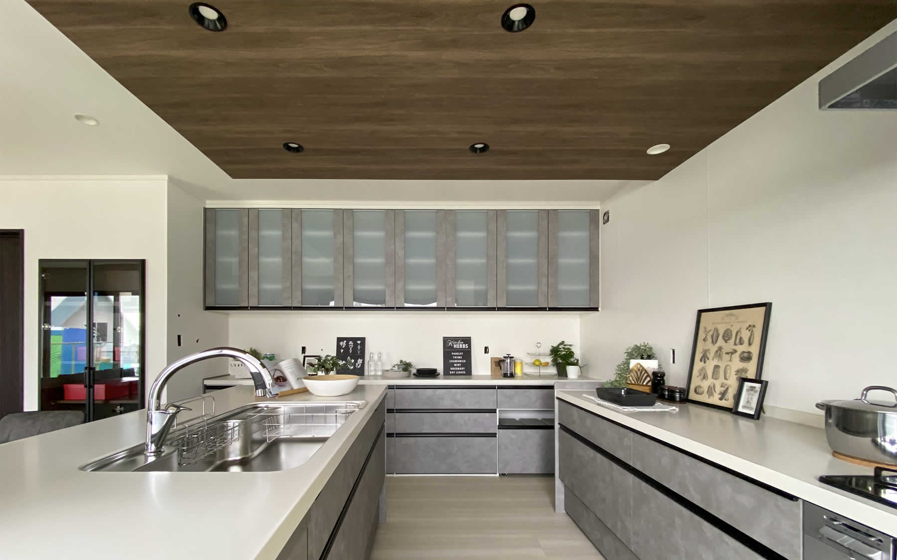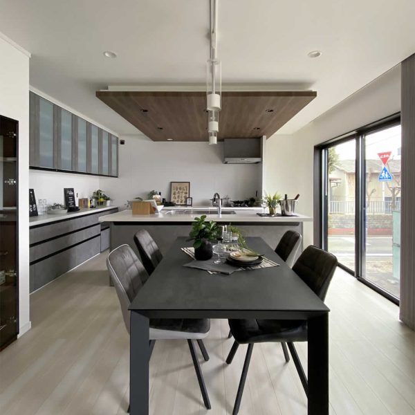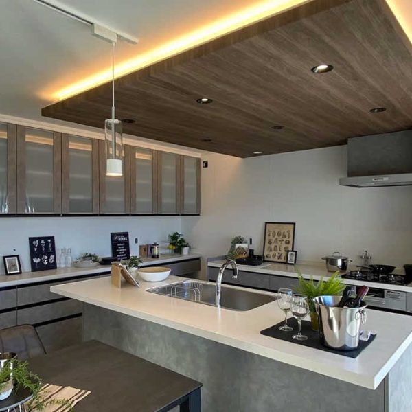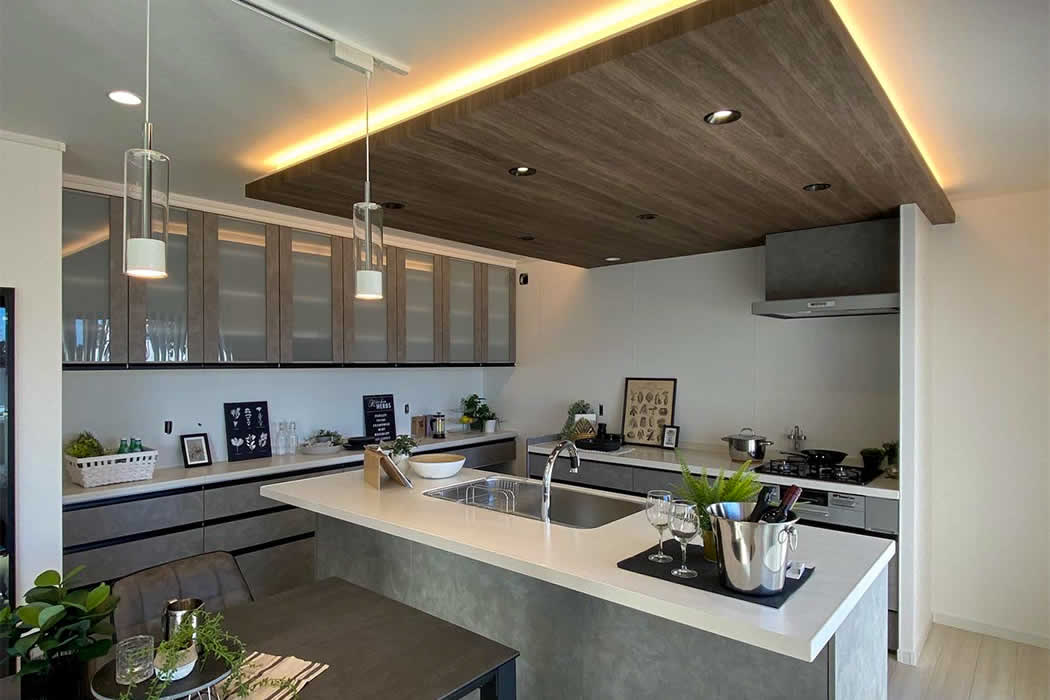 ぐるっとまわれるアイランドキッチン。壁に視界をさえぎられることもないので、開放的なスペースで家事や料理を楽しむことができます。