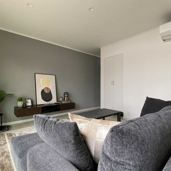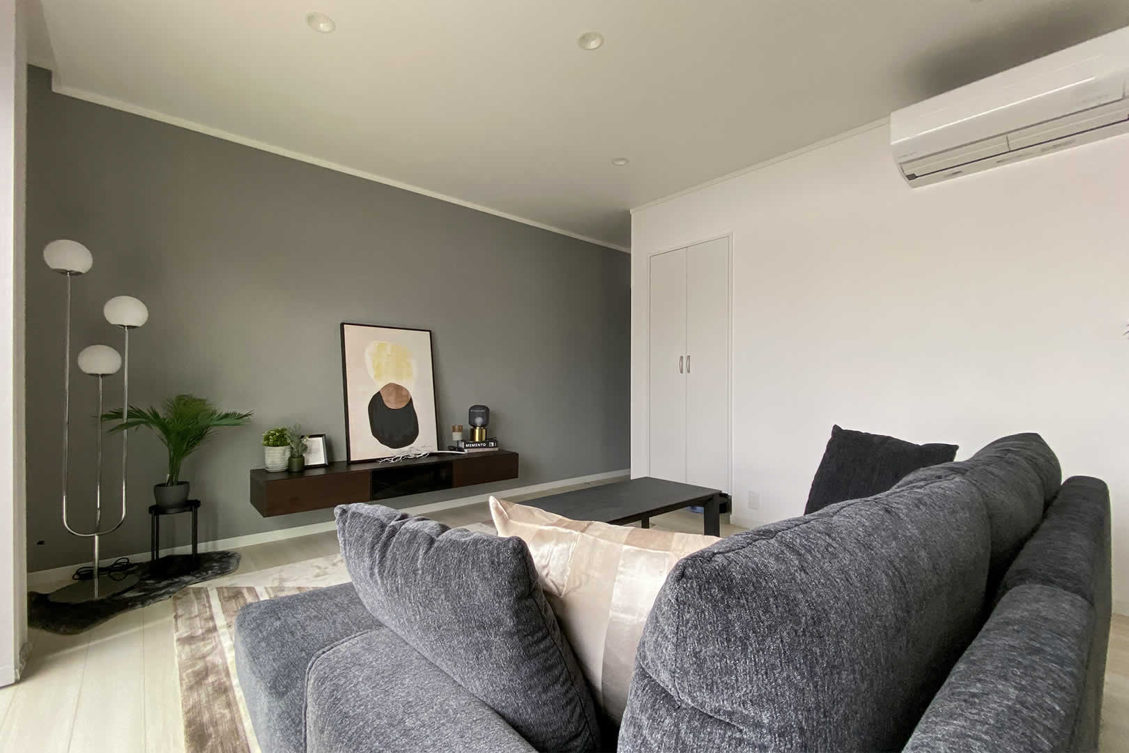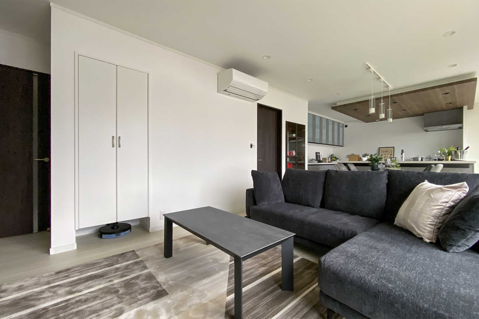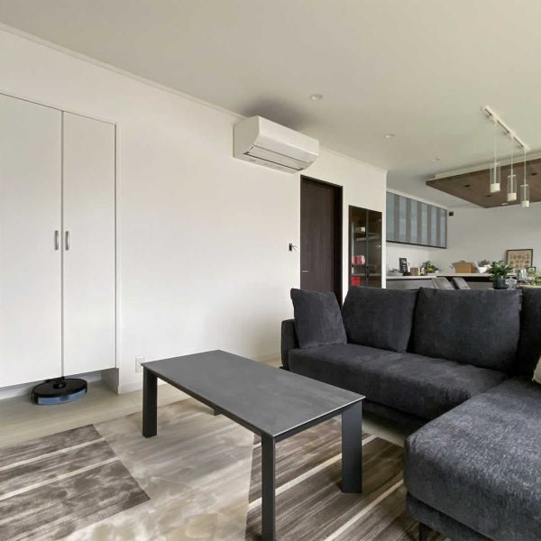 リビングの収納にはルンバの充電もできる基地を用意しました。
