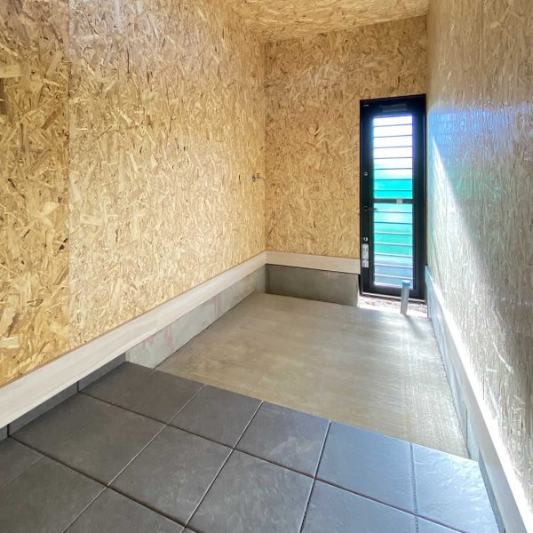 こちらの部屋にはご主人の趣味でペットの爬虫類飼育ケースを置いたり、わんちゃんのグッズやトイレを置いたりするスペースとなっています。水栓も付けていますので、お掃除もラクにできます。