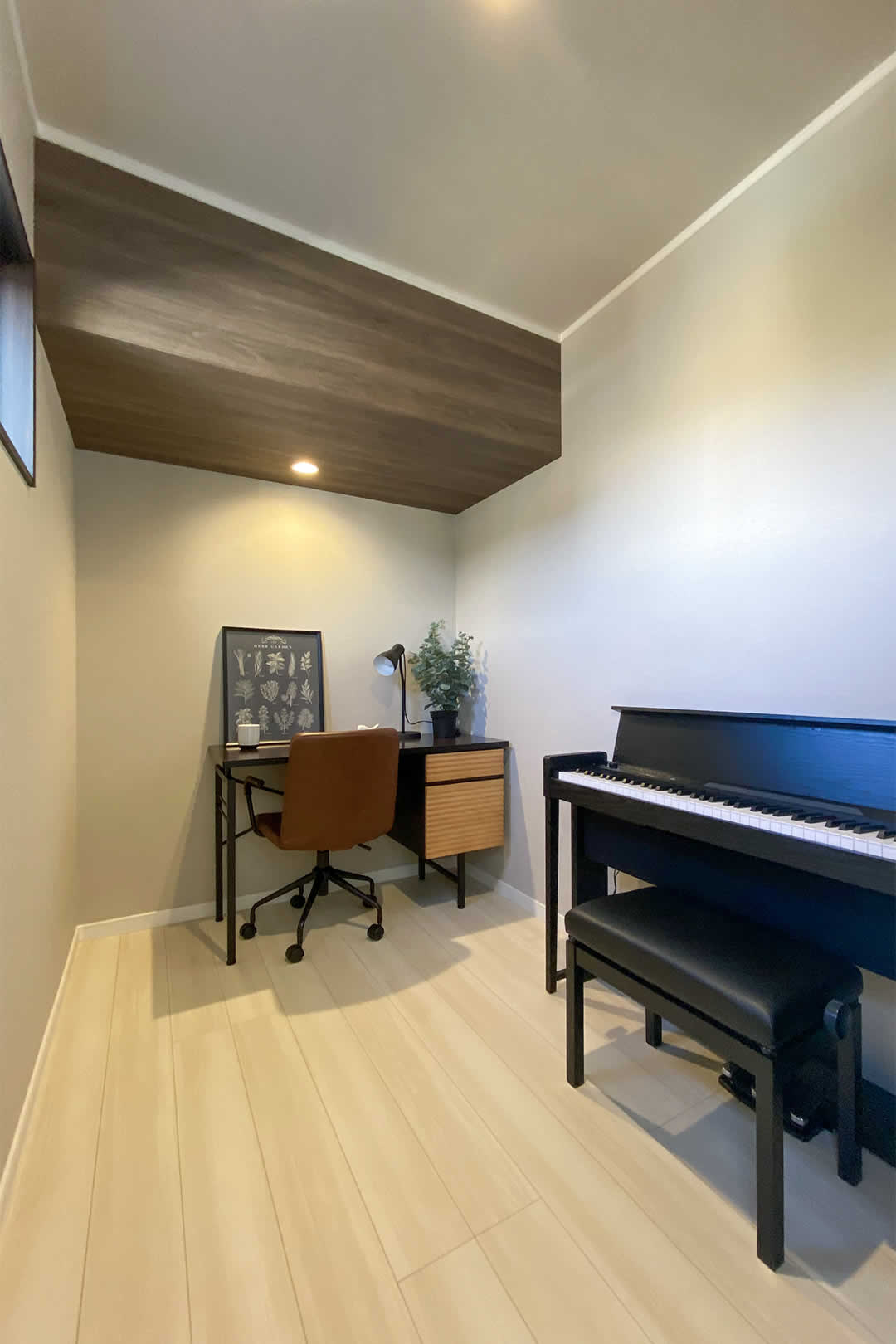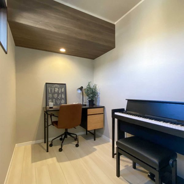 奥様の書斎は趣味のピアノやデスクでお仕事もできるスペースになっています。