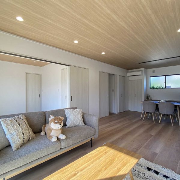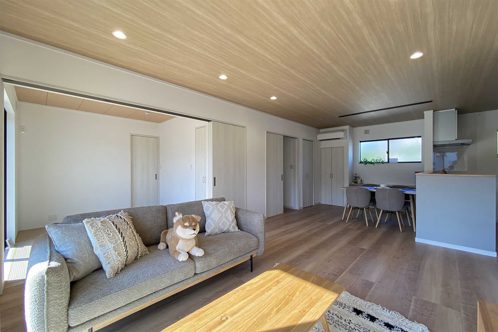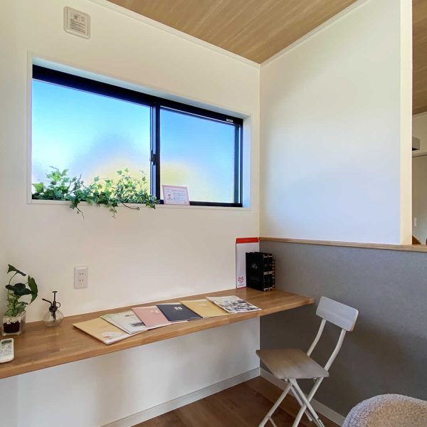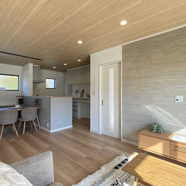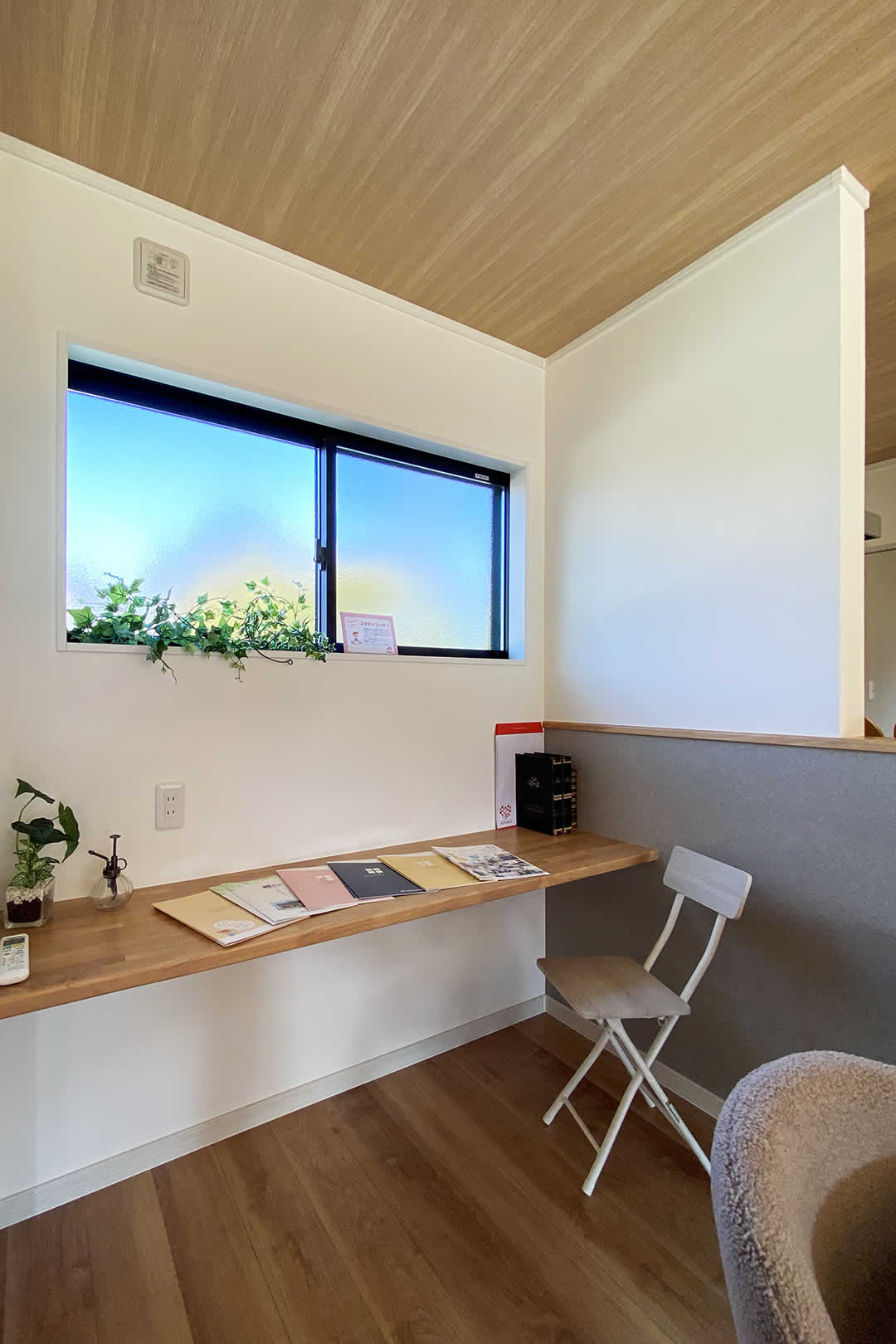 スタディカウンター付きのリビングで、お子様の宿題をするなど暮らしに合わせてアレンジできるスペースです。ナチュラルな木目調の床が映える広々したリビングです。