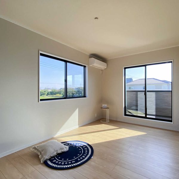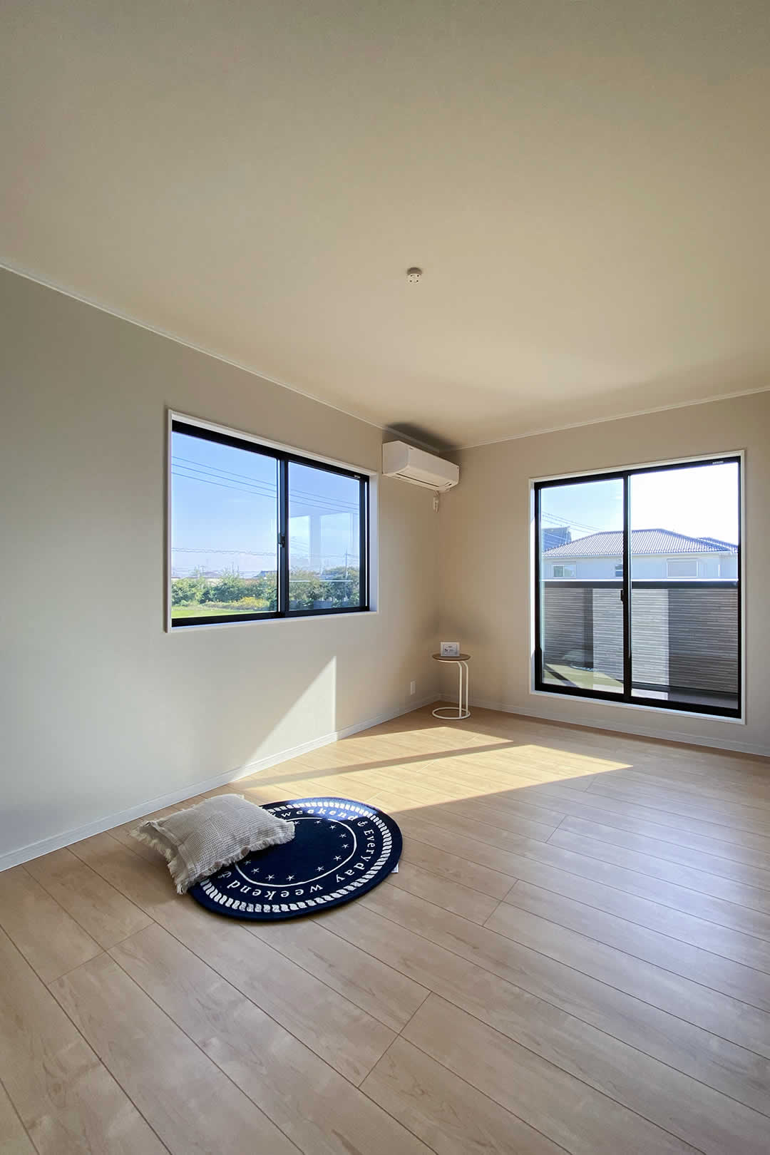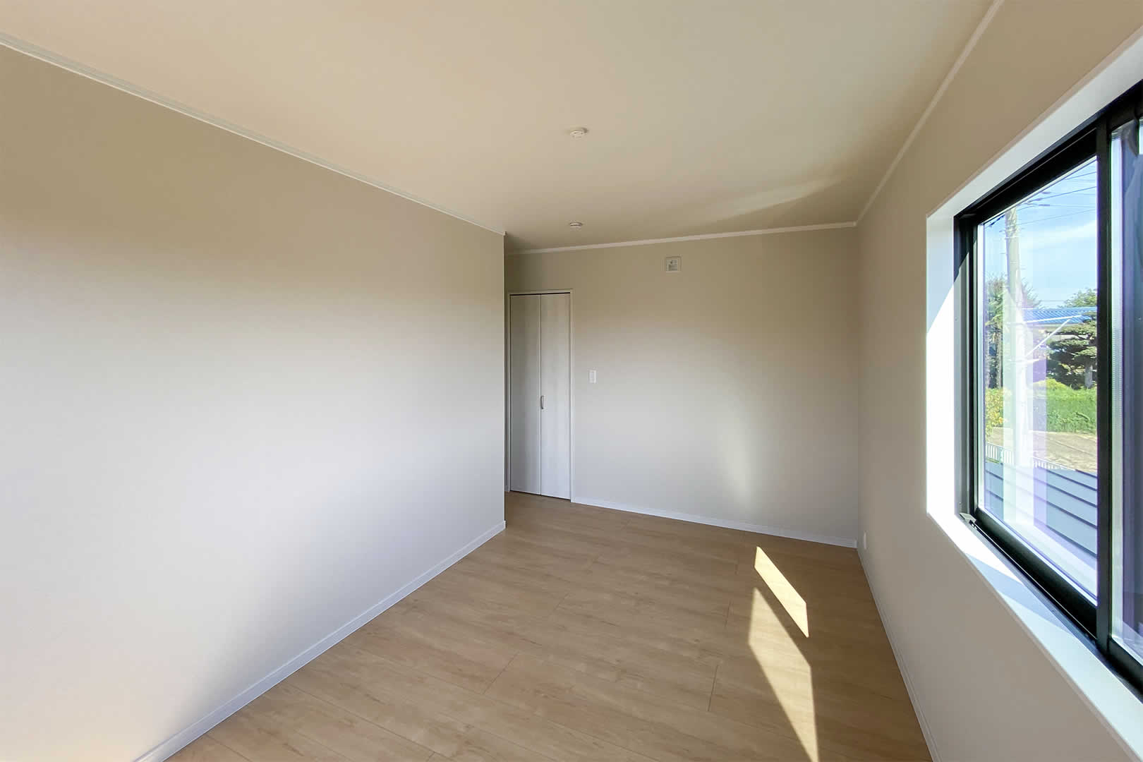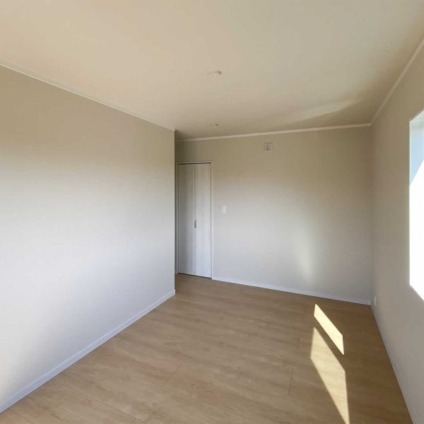 南東の角にあり明るい部屋です。8帖の部屋に3帖のウォークインクローゼットがあるのでベッドもゆったり2つ置けます。