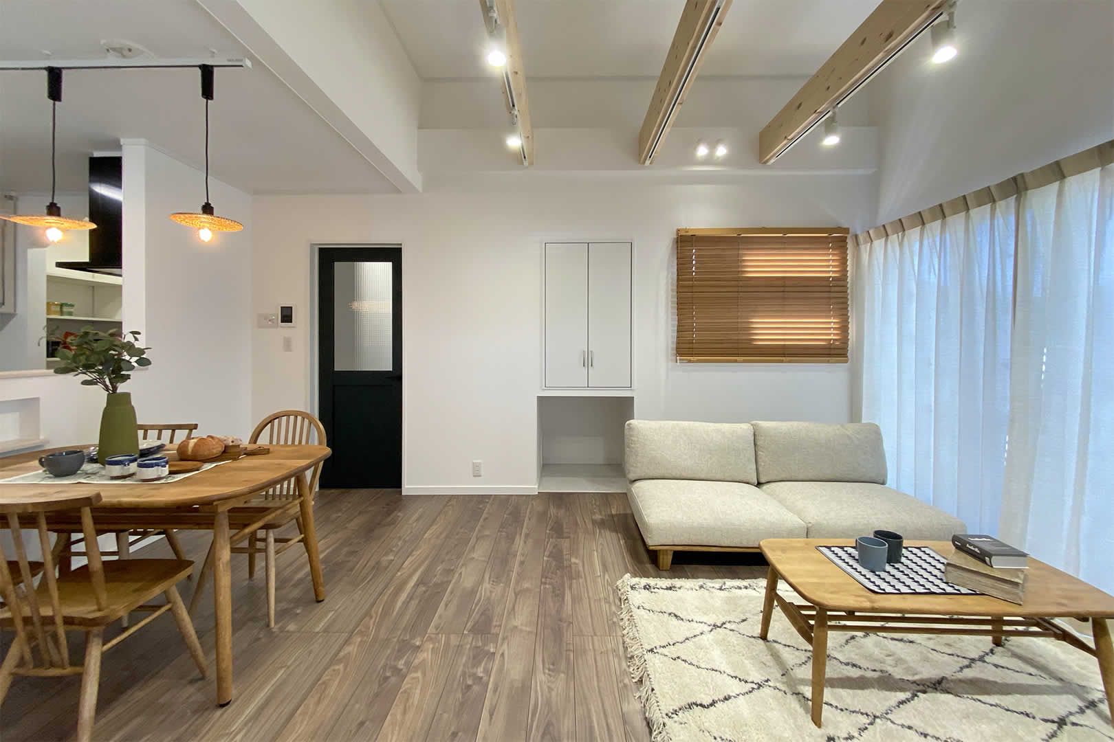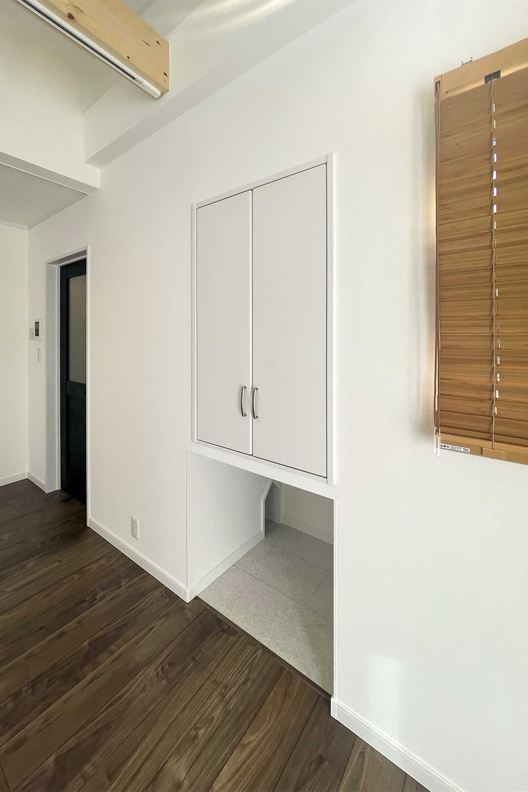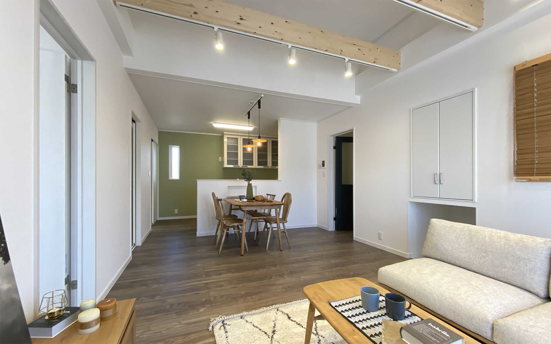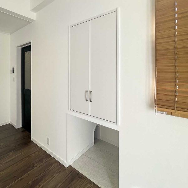 リビングに収納を作ることで掃除道具や日用品のストックなどキレイにしまえてリビングがキレイに保てます。