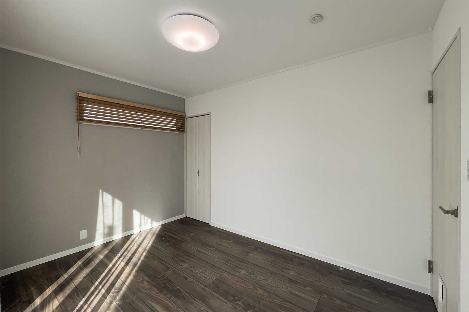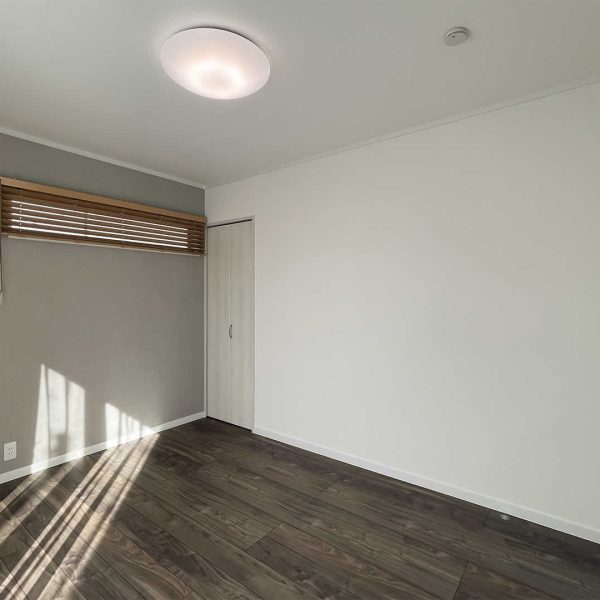 6帖の主寝室。寝る部屋としてはちょうどいい大きさです。主寝室の扉にはペットドアを採用しています。愛犬・愛猫等大好きな家族と一緒に寝られます。