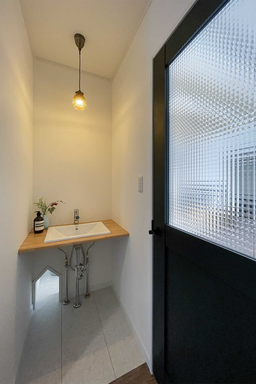 今人気のホール手洗い、帰宅後すぐに手洗い出来ると清潔に保てます。