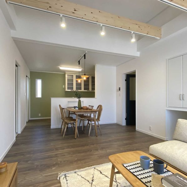 LDKが16帖と折り上げ天井をする事によってより広く開放感のあるリビングになります。
