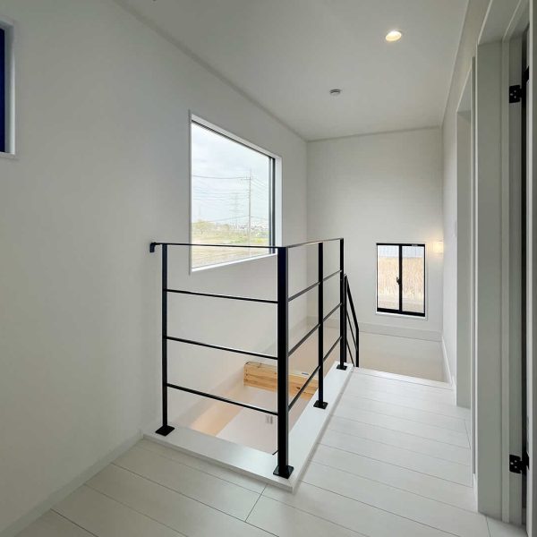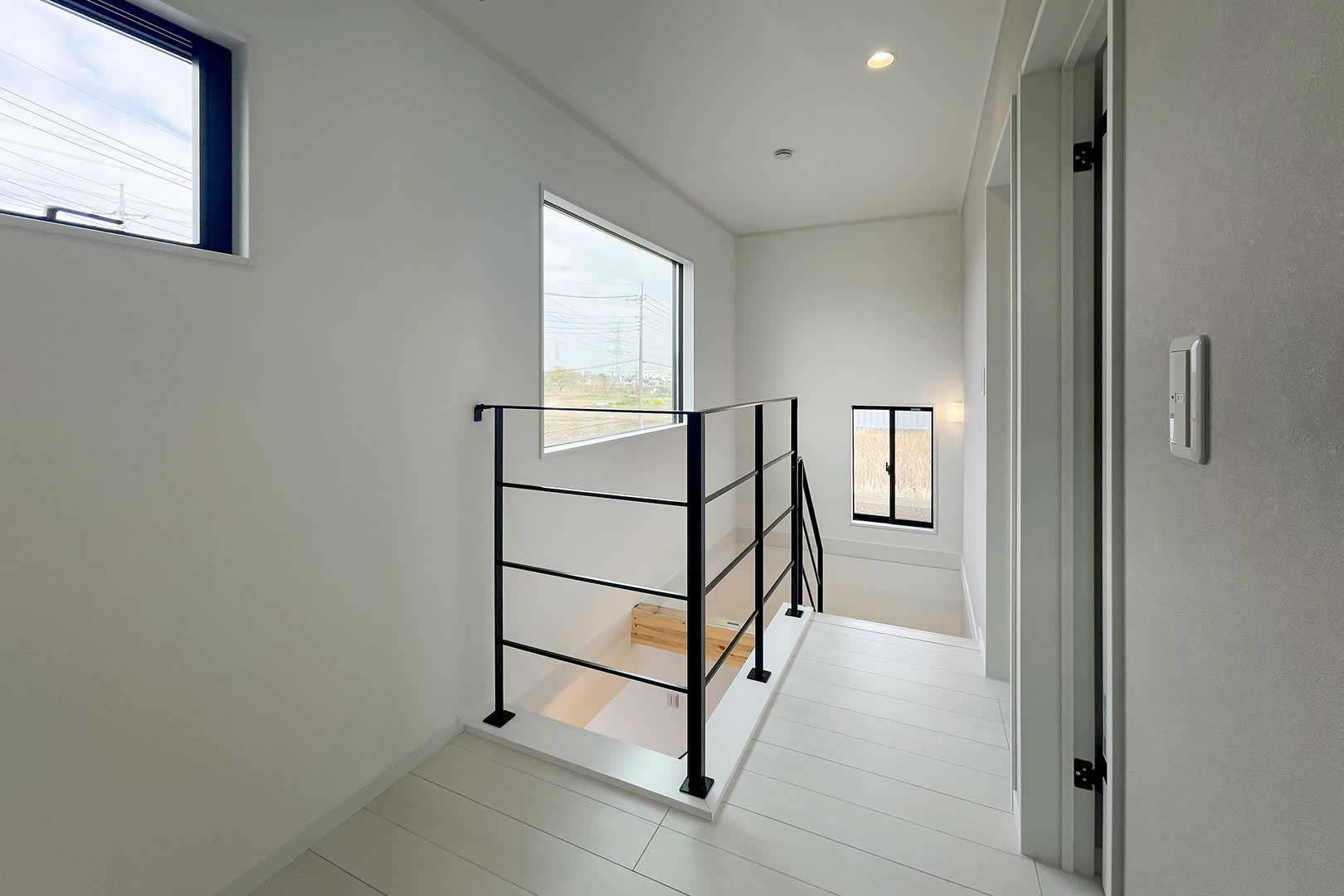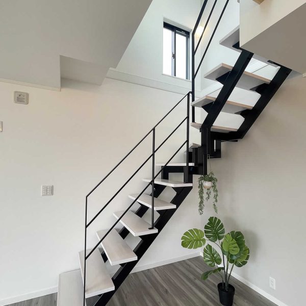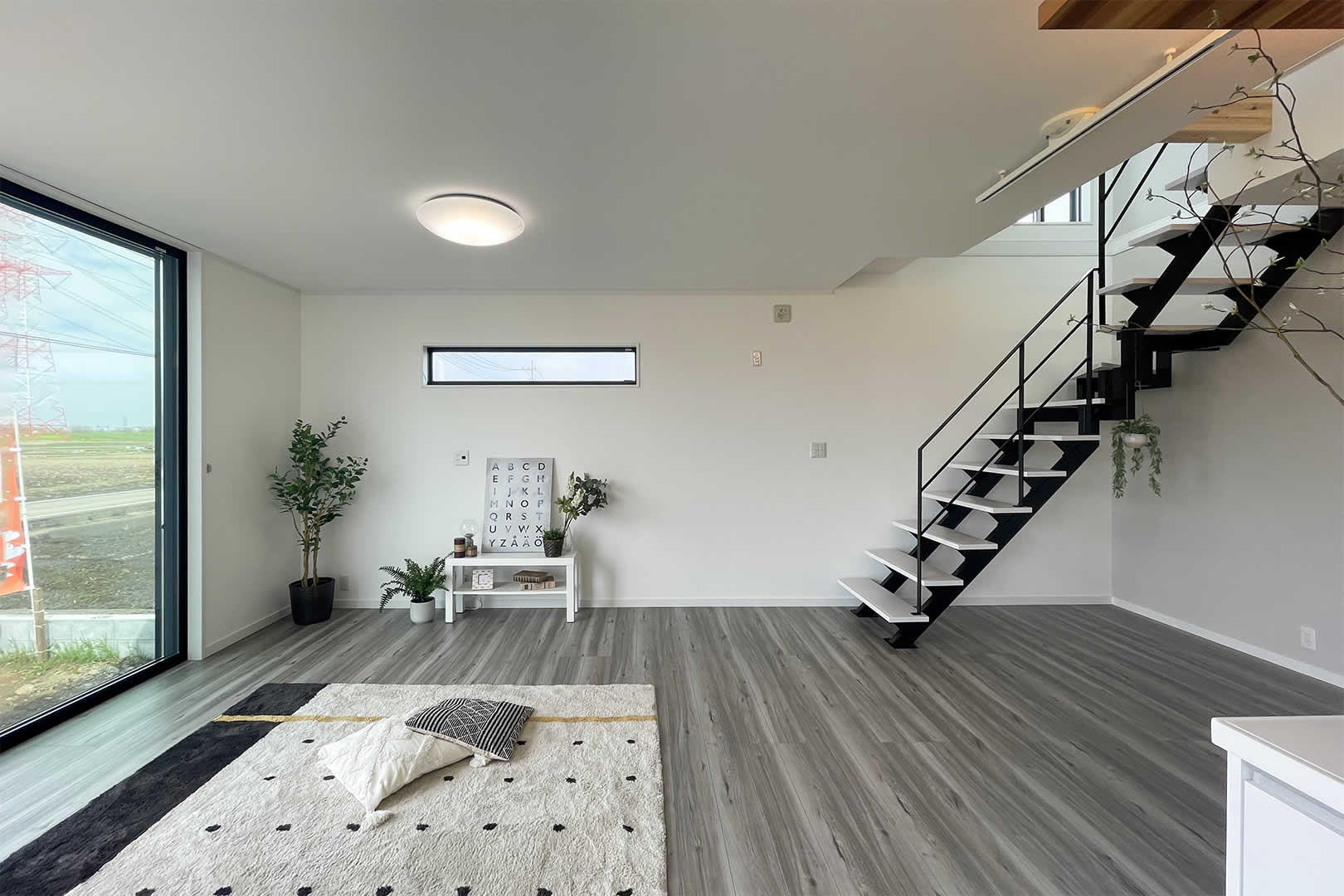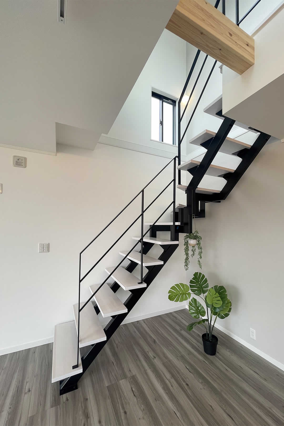 広々した空間に格子の手すりが素敵なスタイリッシュなスケルトン階段はお部屋の主役です。