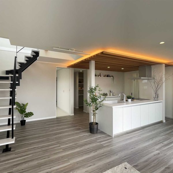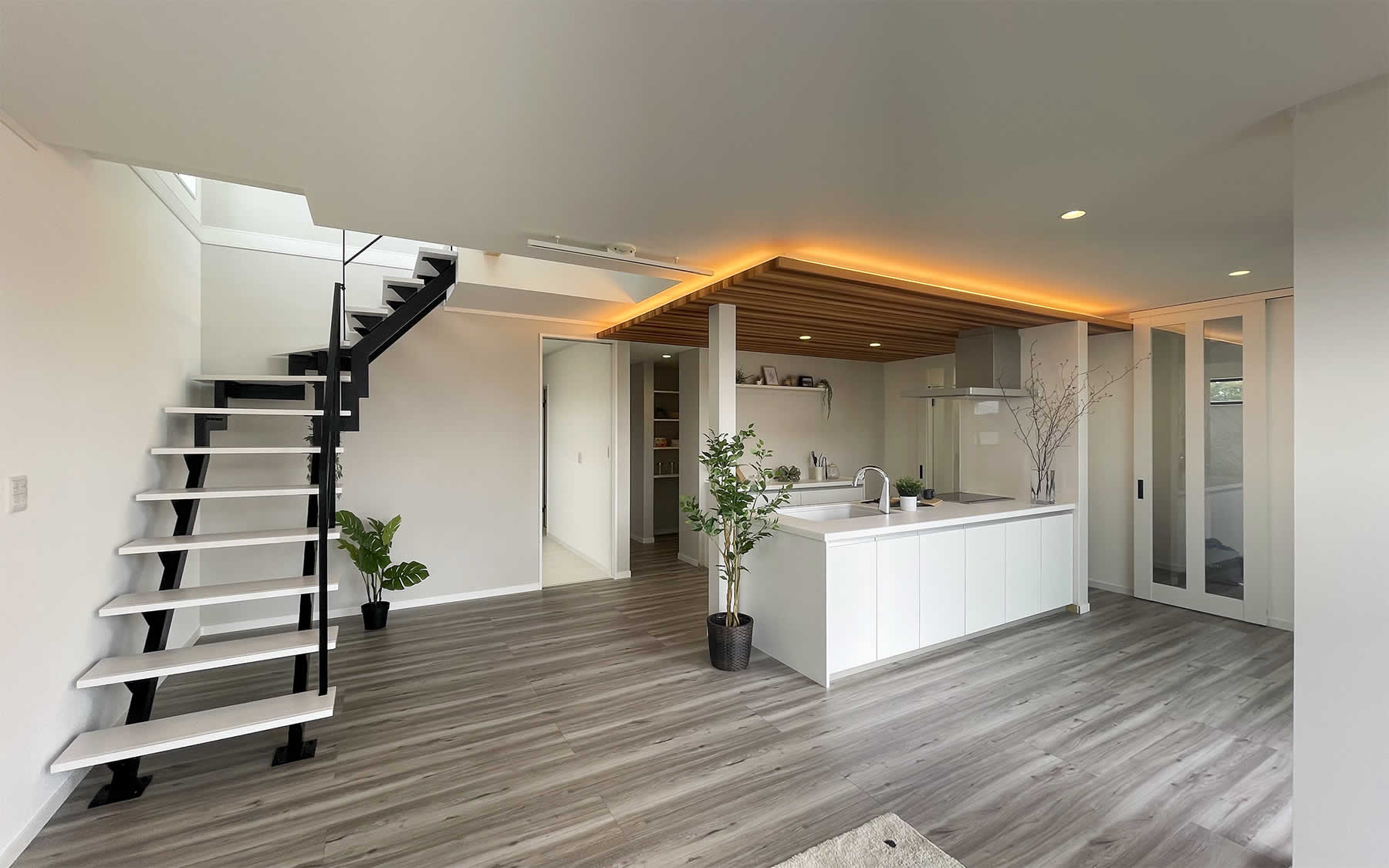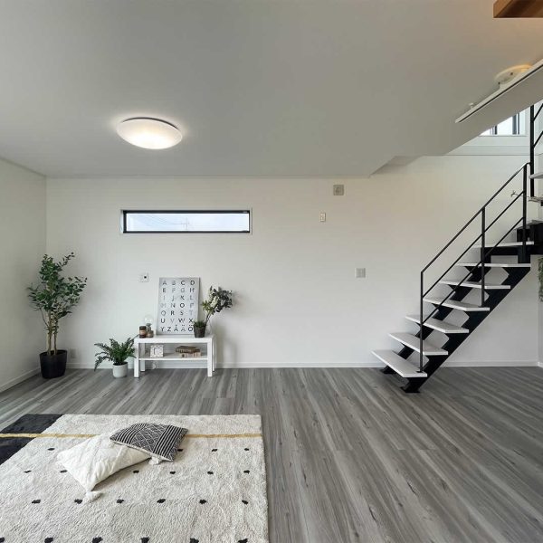 スケルトン階段がリビングをオシャレな空間に仕上げます。