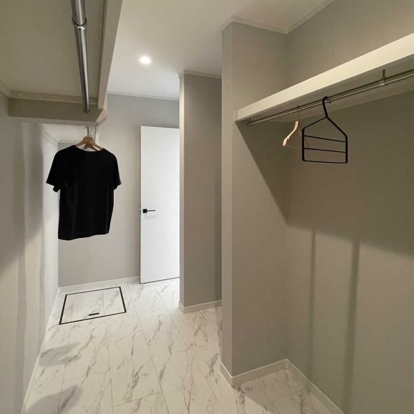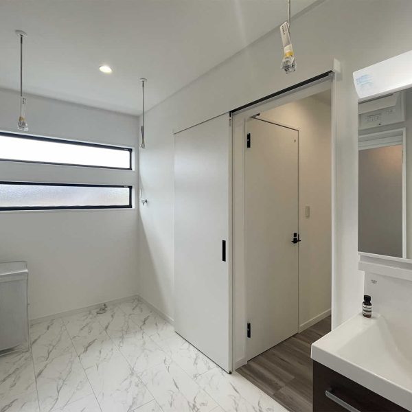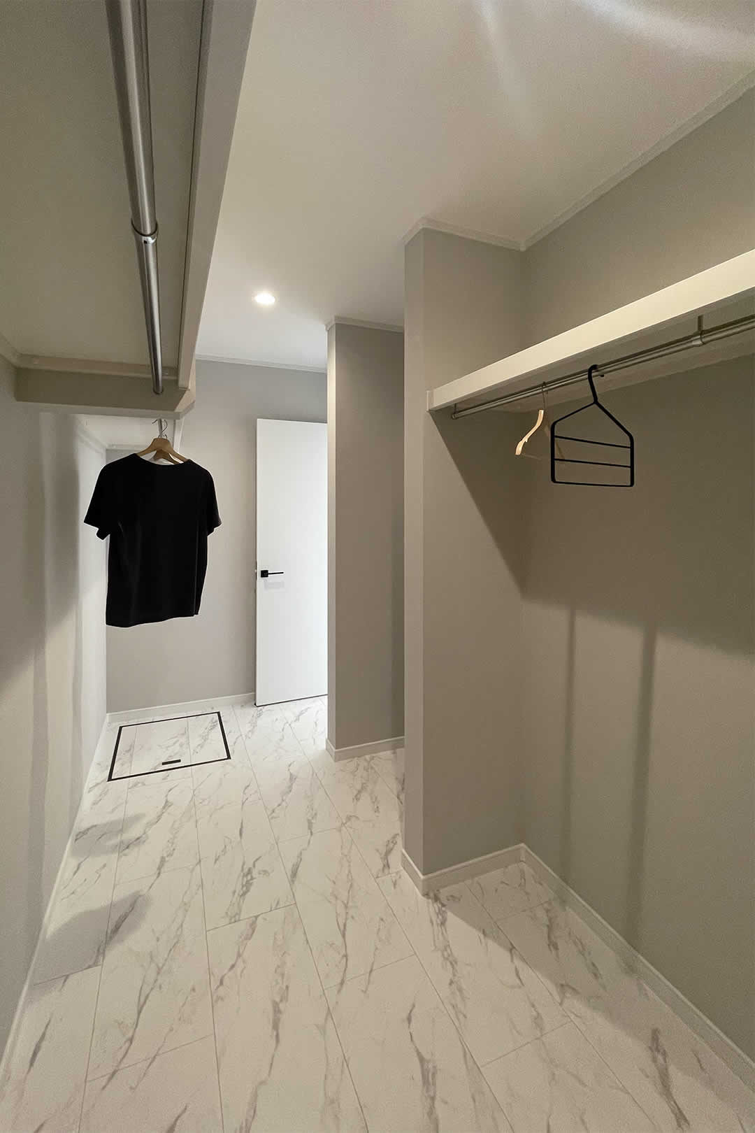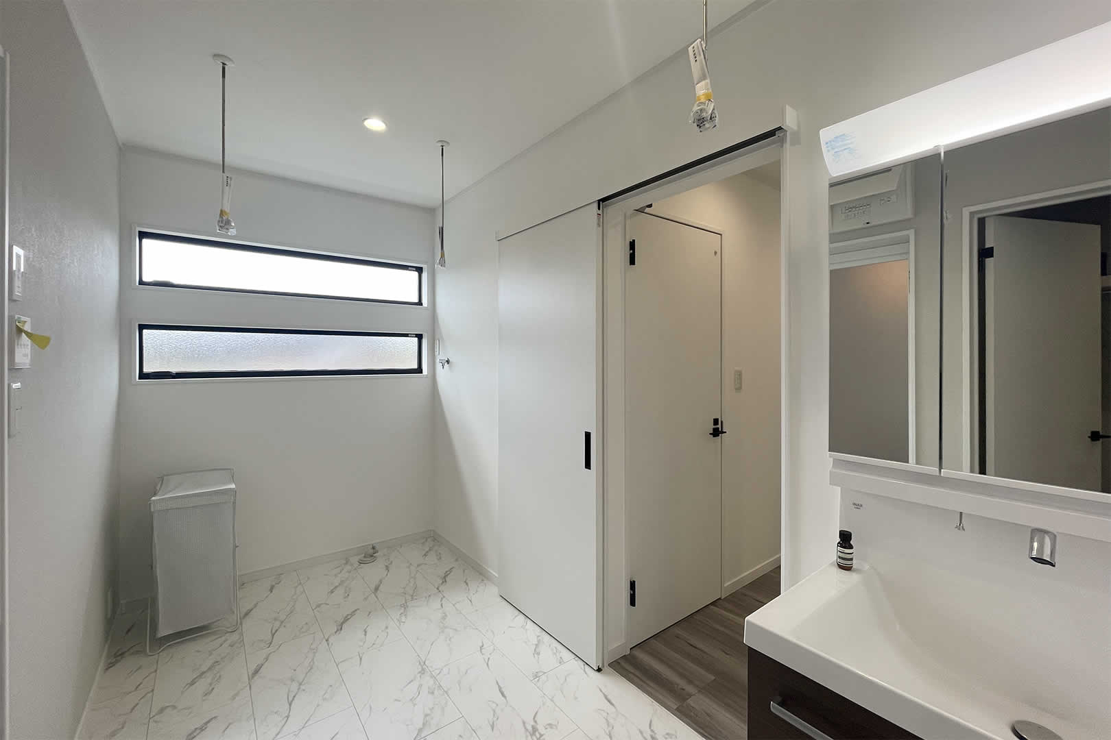 ランドリールームには室内物干しがついていて洗濯の後すぐに干すことができます。
