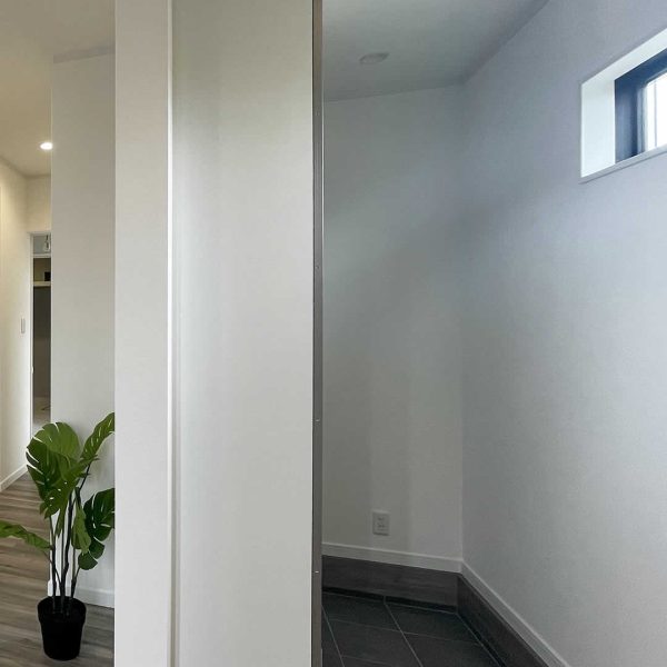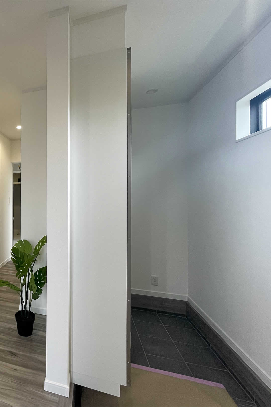 玄関には土間収納が付いています。家族の靴や外で使うものは可動棚で高さの調整ができます。趣味のものを置いたりするのにもオススメです。