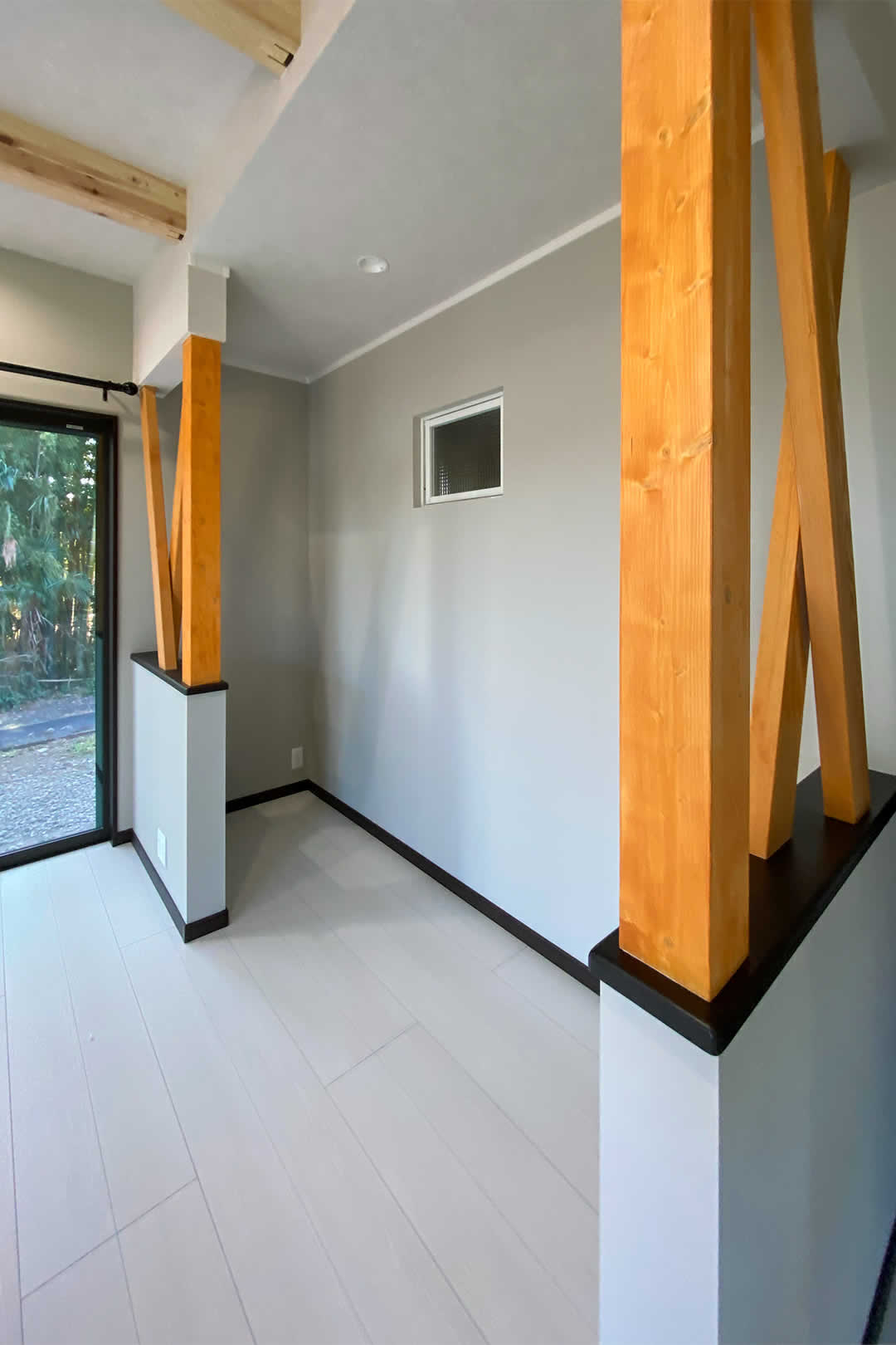 お子様が遊んでいる姿が見やすいよう壁を半分にし、より開放的にしてあります。