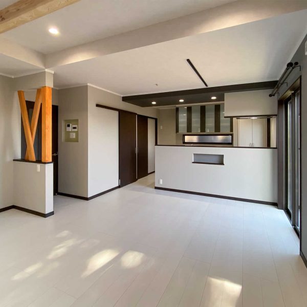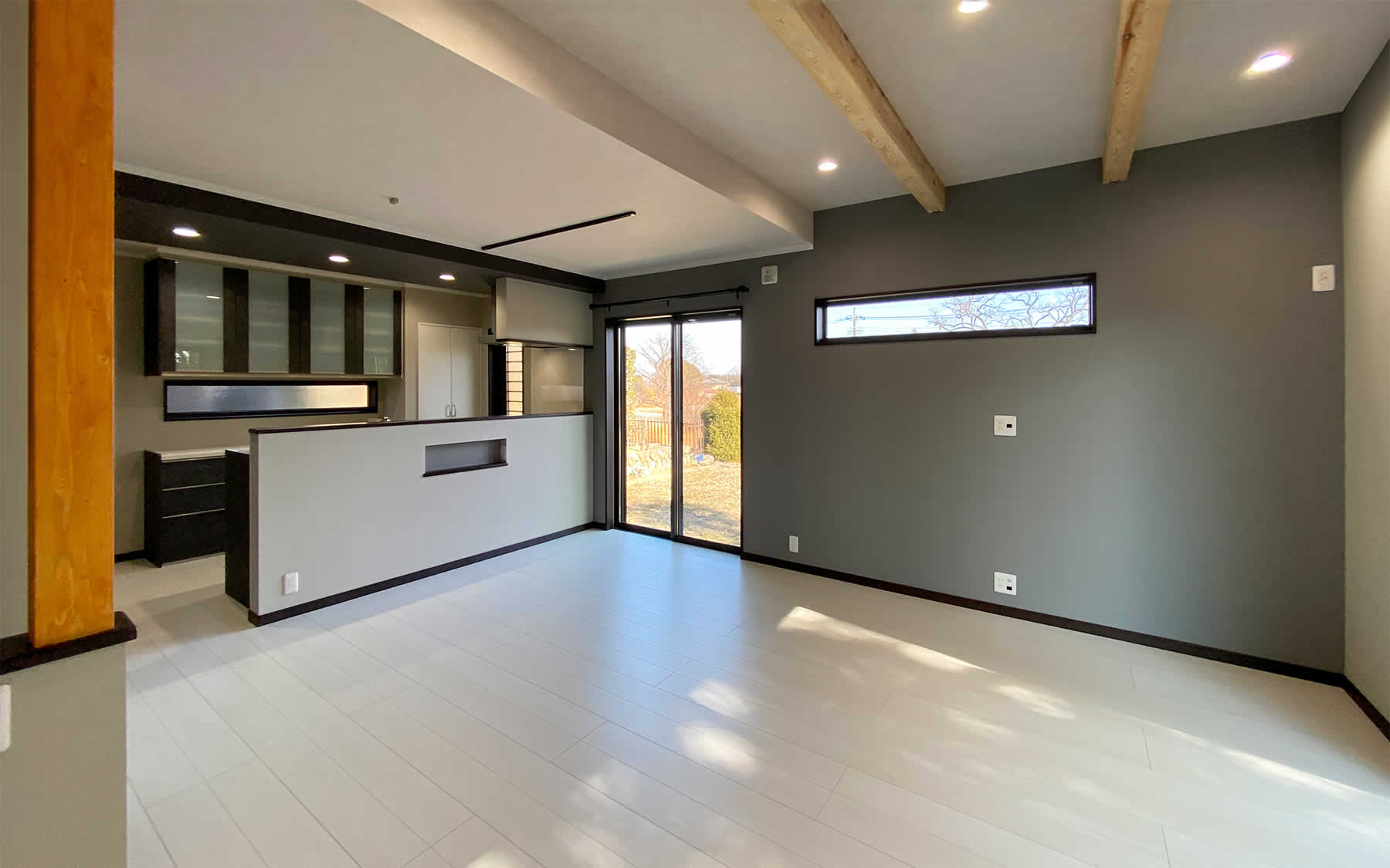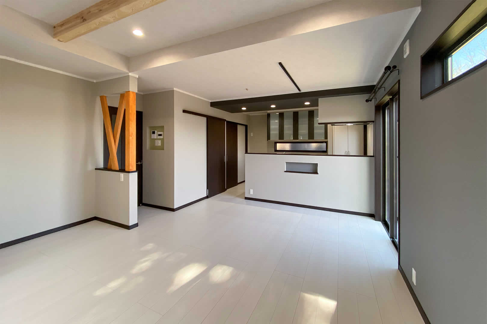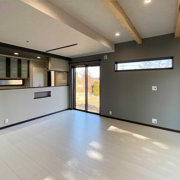 お子様のおもちゃスペースのあるリビングは、南側に大きな窓があり明るい空間に。