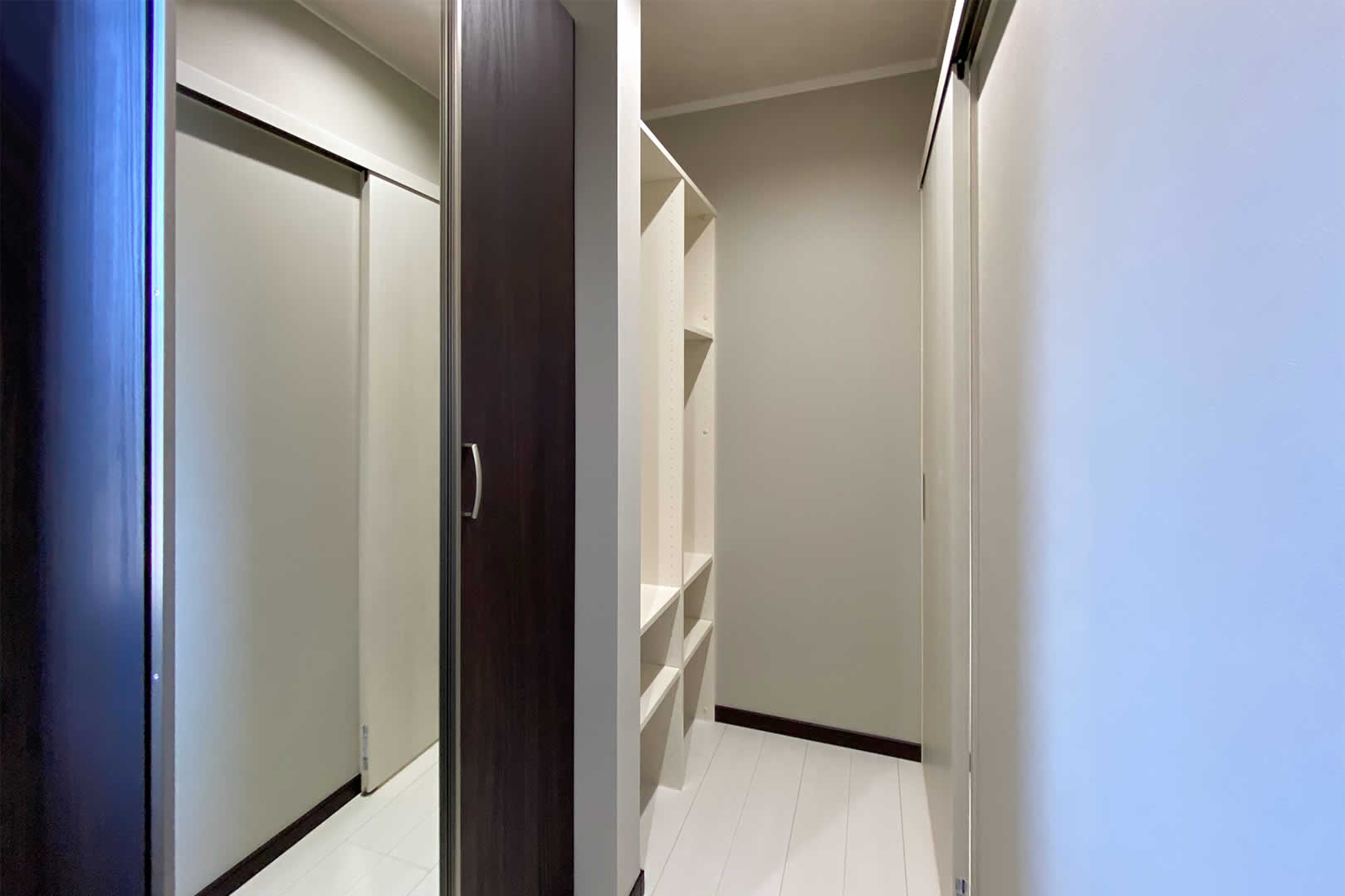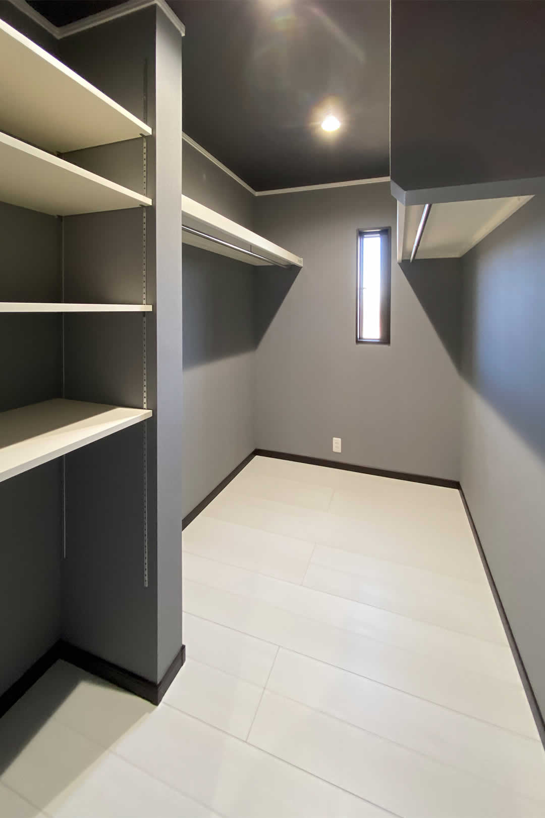 家族の洋服をかけるだけではなく、バックやアクセサリーなど小物を収納するのに棚があると無駄なく収納できます。