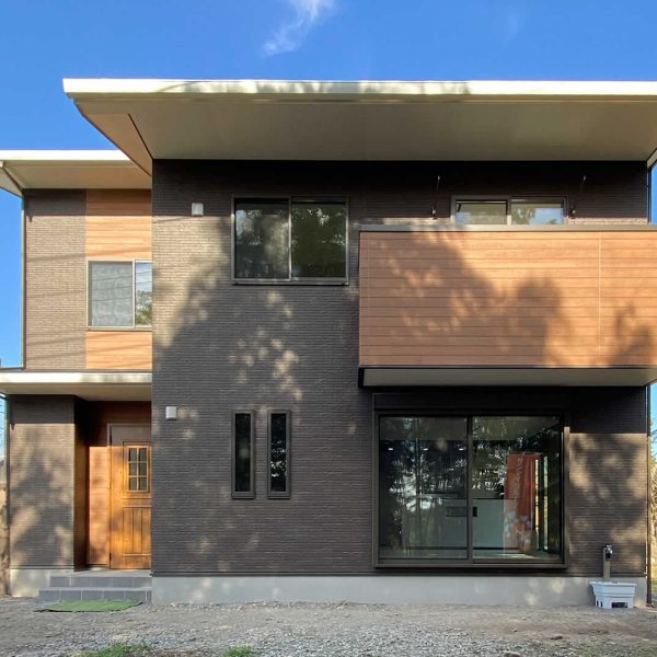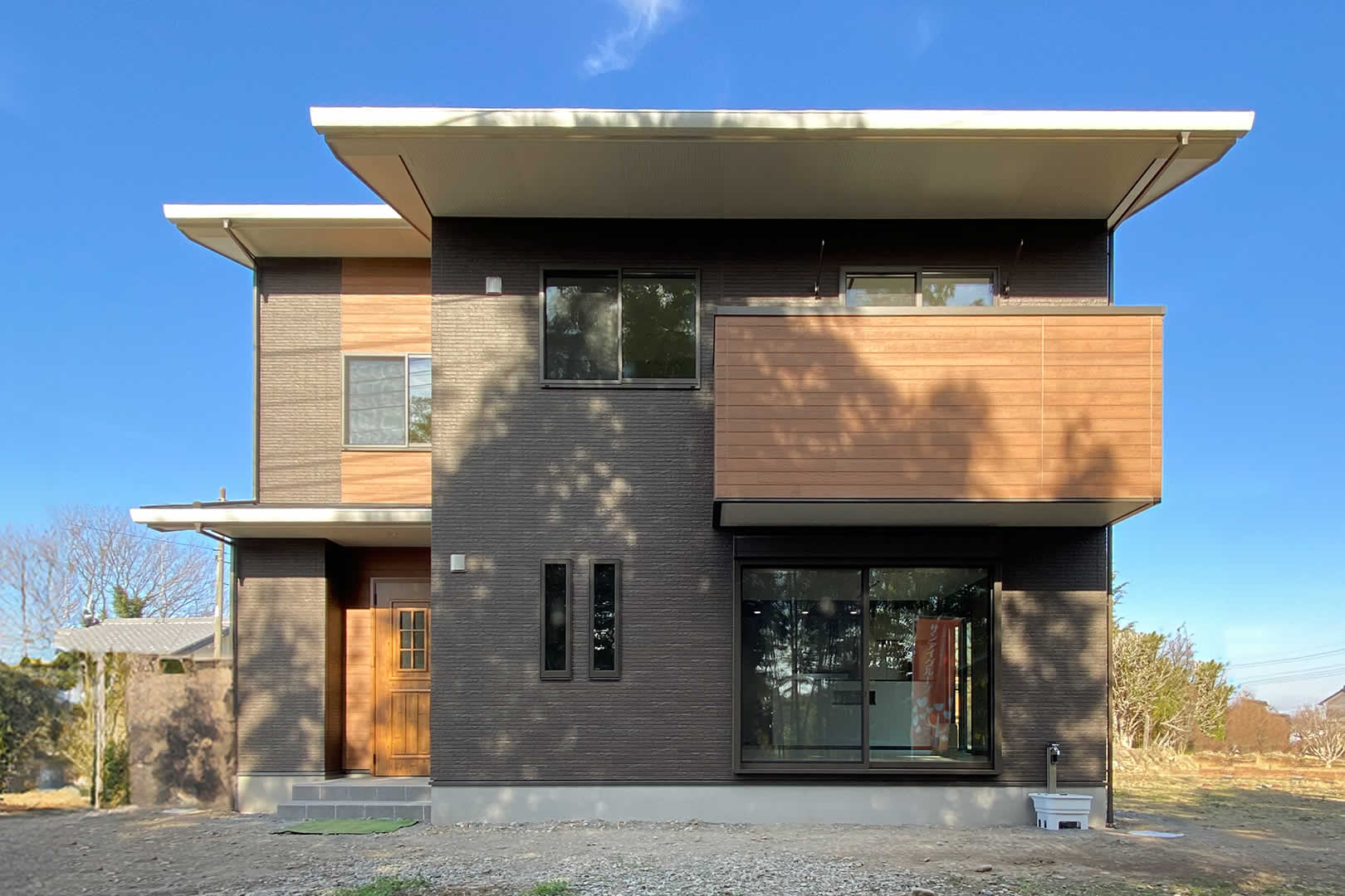 木目調をアクセントとした外観。南側の屋根の軒を少し延ばすことにより重厚感のある建物になります。
