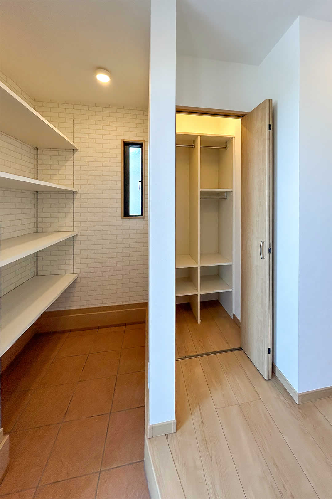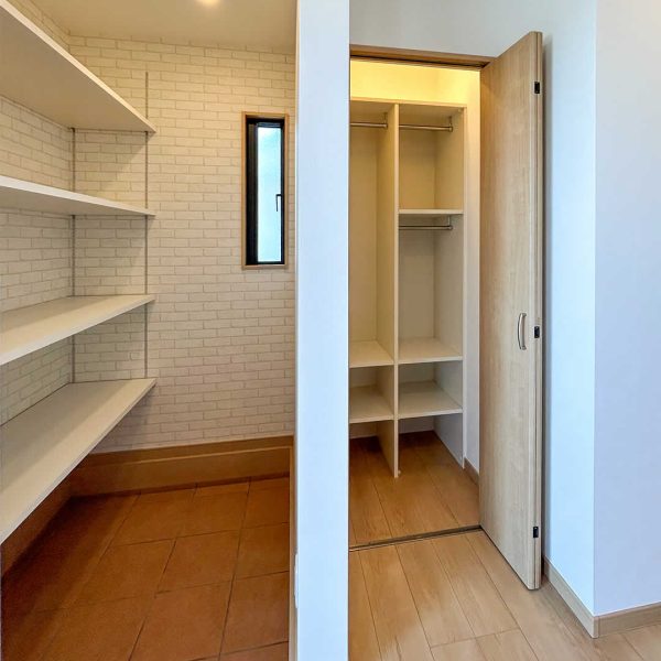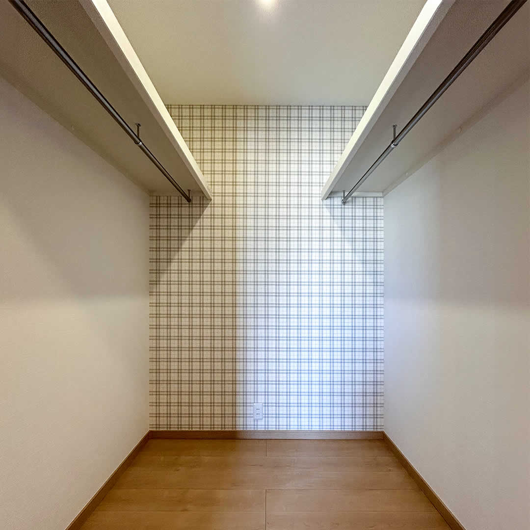 脱衣室のすぐ横に家族分の洋服がしまえる大容量のファミリークローゼット家事の動線が考えられているのでスムーズです。
