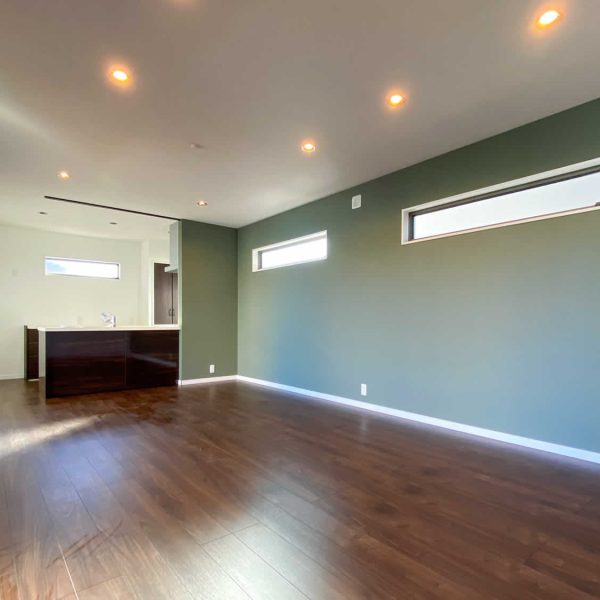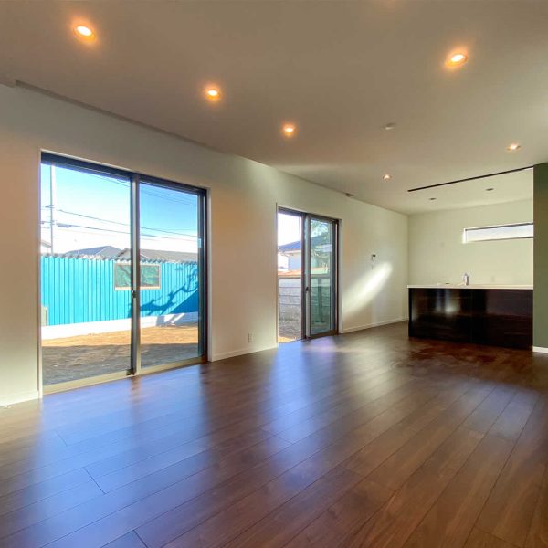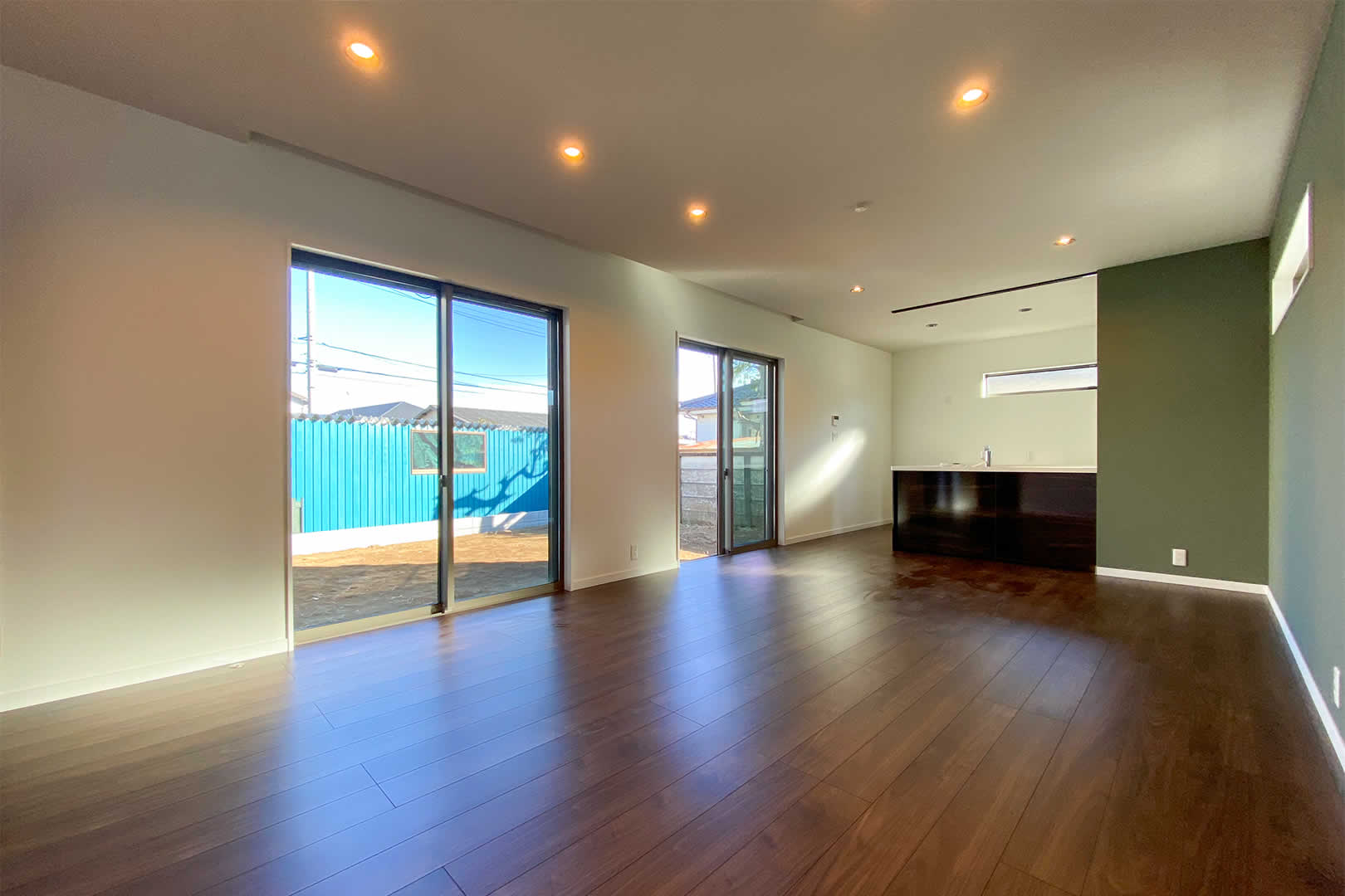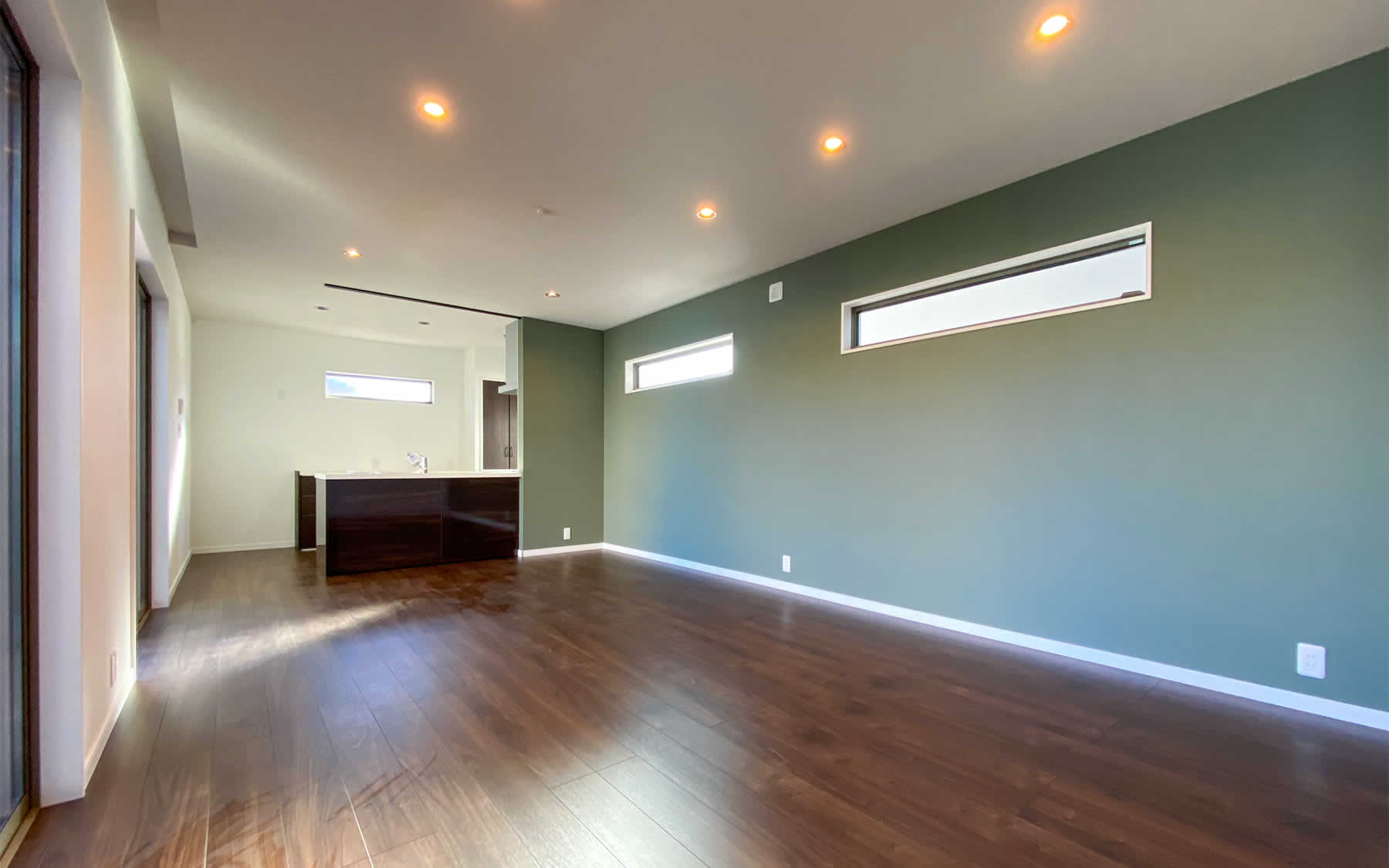 縦に長いリビングはキッチンにいても家族が見渡せる間取りです。