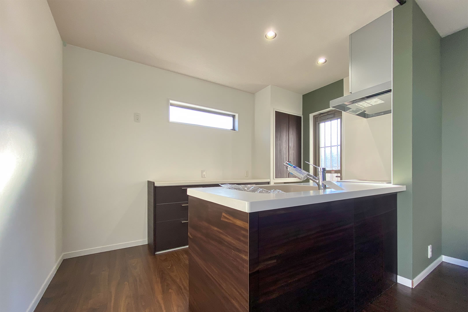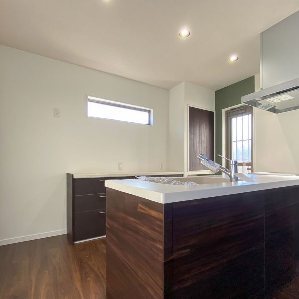 フルフラットキッチン解放感があり大きな窓からプライベートなお庭も望めます。