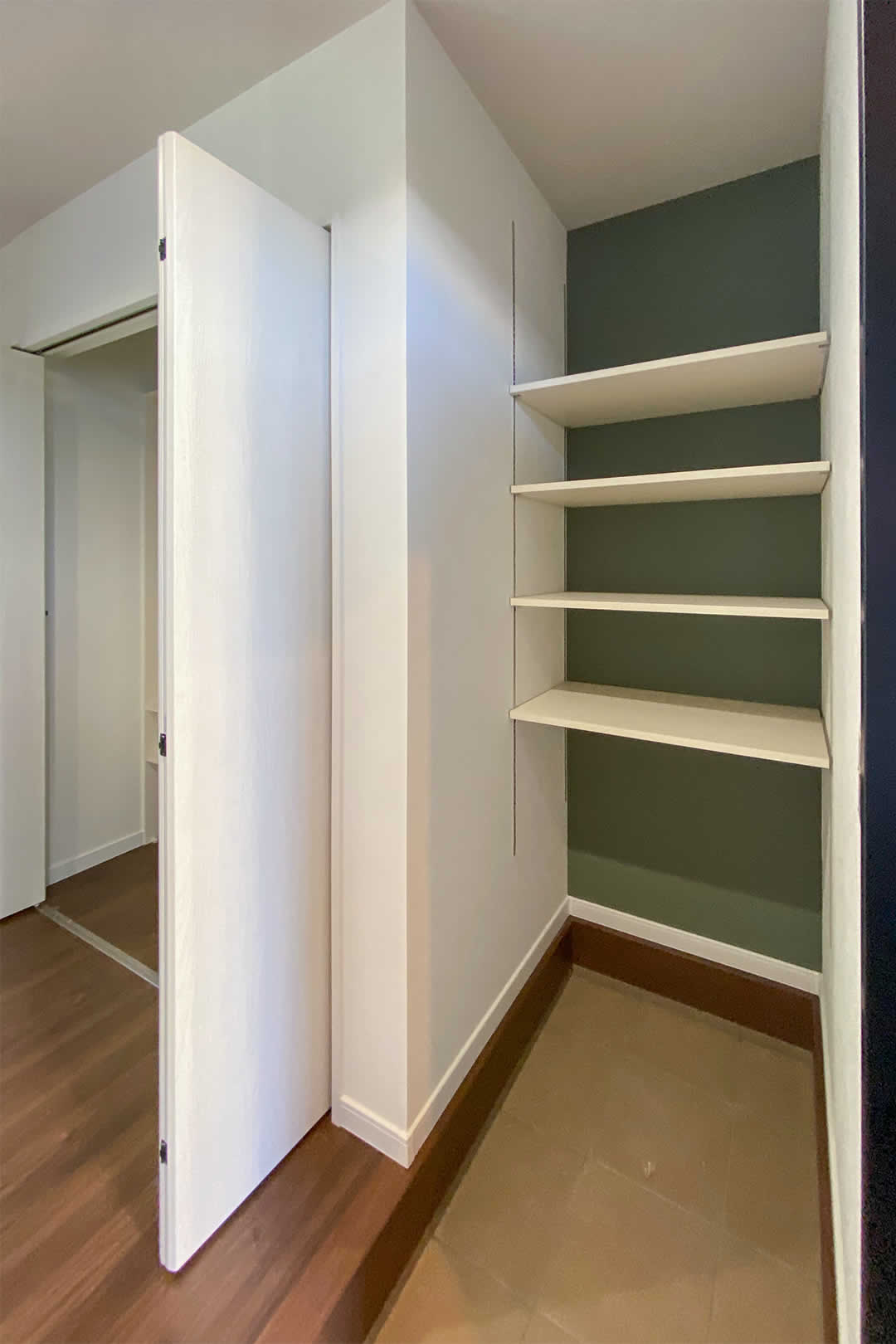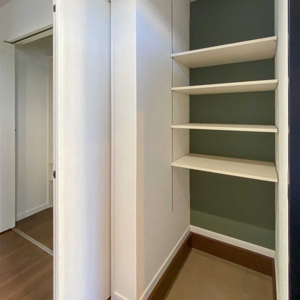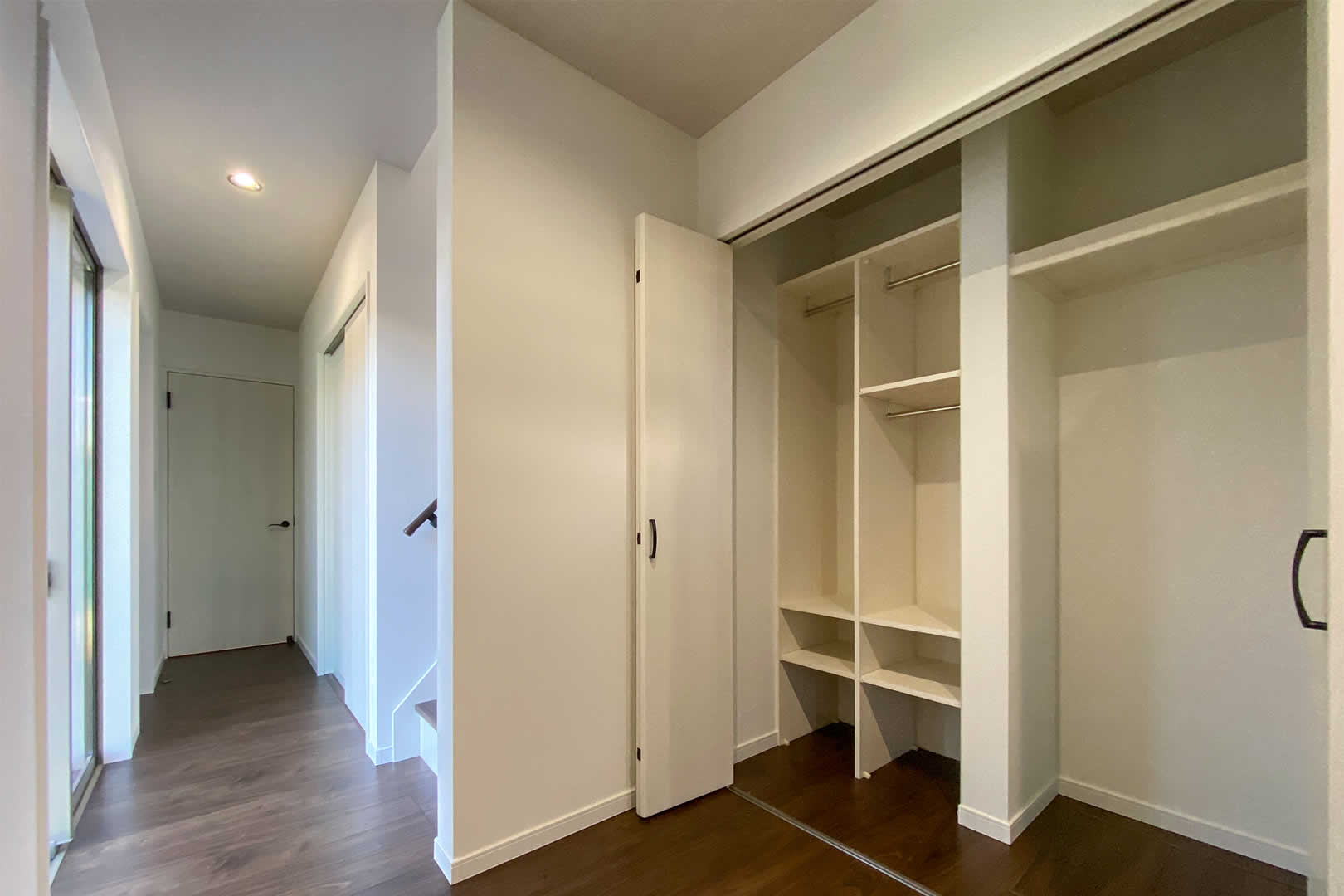 帰ってきてすぐに上着やバッグをしまえる収納があります。リビングに荷物を持ち込まずキレイが保てます。