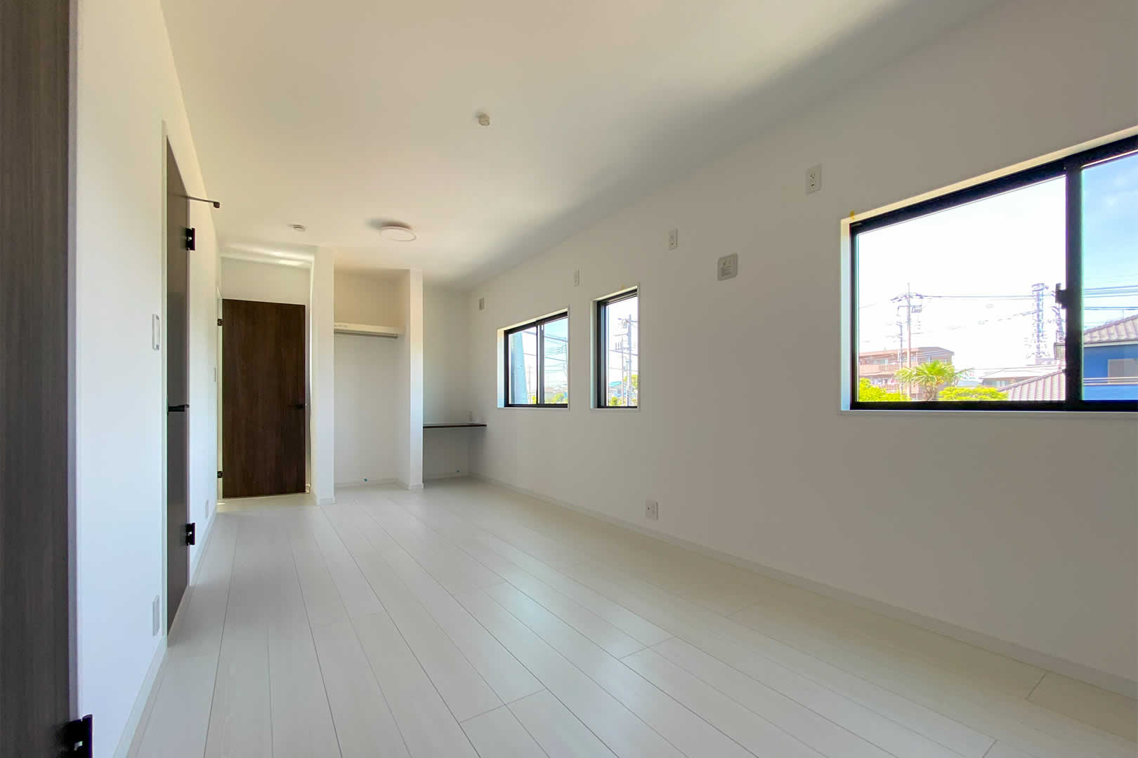 将来的に2部屋に区切ることのできる子供部屋。家族構成が未定なご家族にもぴったりな間取りです。