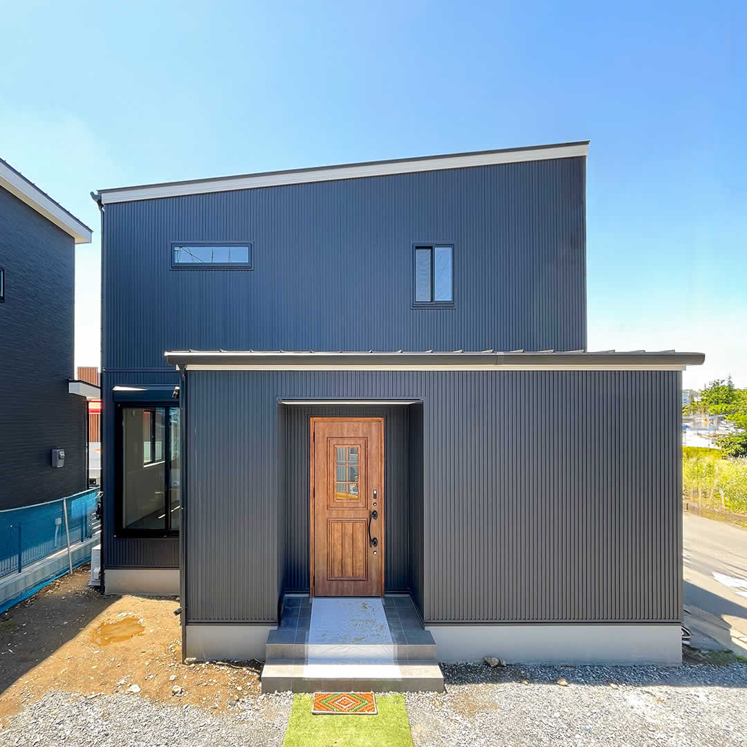 外壁は人気のガルバリウムのネイビーを使用しています。