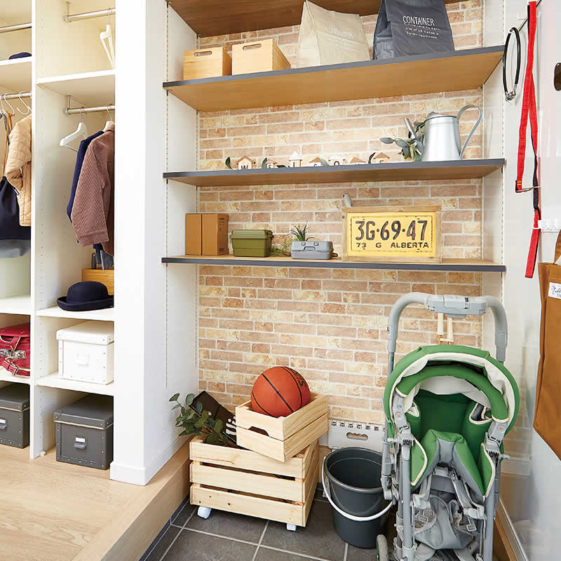 広い土間にはベピーカーや自転車、お子様の汚れた遊び道具など気にせず収納できます。