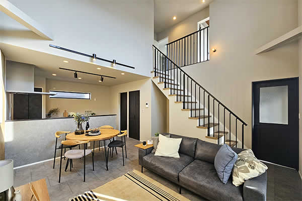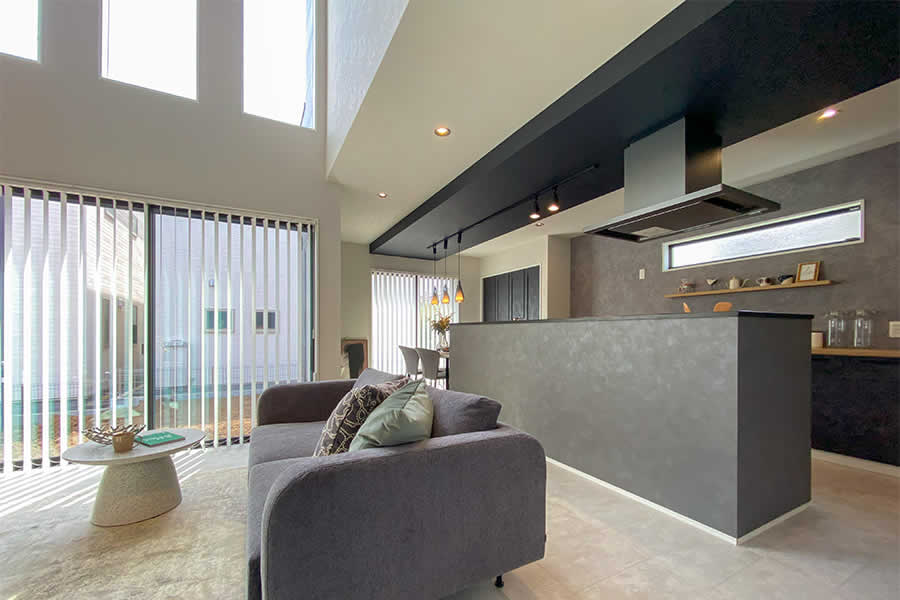 リビング吹き抜け 大開口の吹き抜け。明るさと開放感バツグンの広々リビング。2