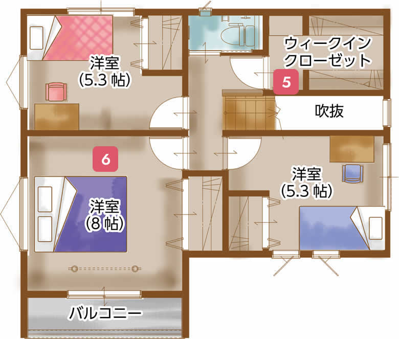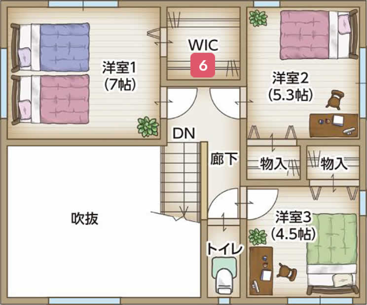 ファミリークローゼット 家族の洋服をまとめて収納できるクローゼットです。この収納があることで各部屋もスッキリ片付きます。6