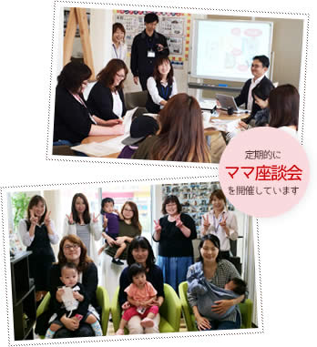 mamamoでは家づくりを経験したママさん達の意見をもとにつくられています。サンアイグループでは、定期的にママ座談会を開催しています。